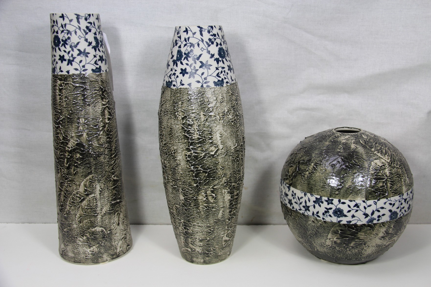 Набор фарфоровых ваз авторской работы. Современная тематика. Без проблем впишется в любой интерьер. Интересное двухцветное фактурное решение с рисунком. Прочная, устойчивая.