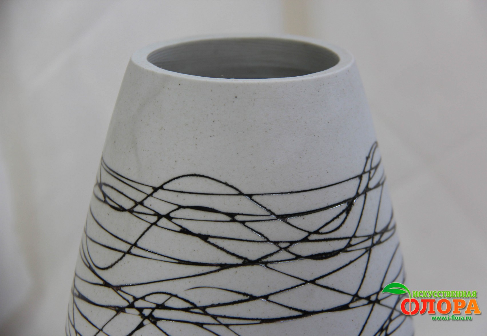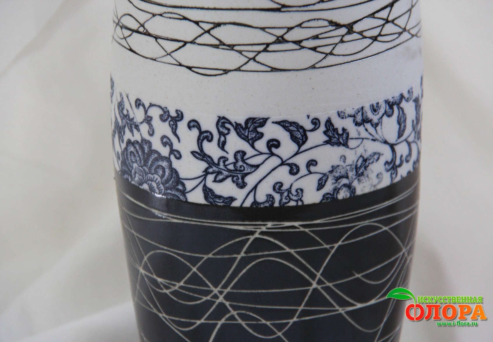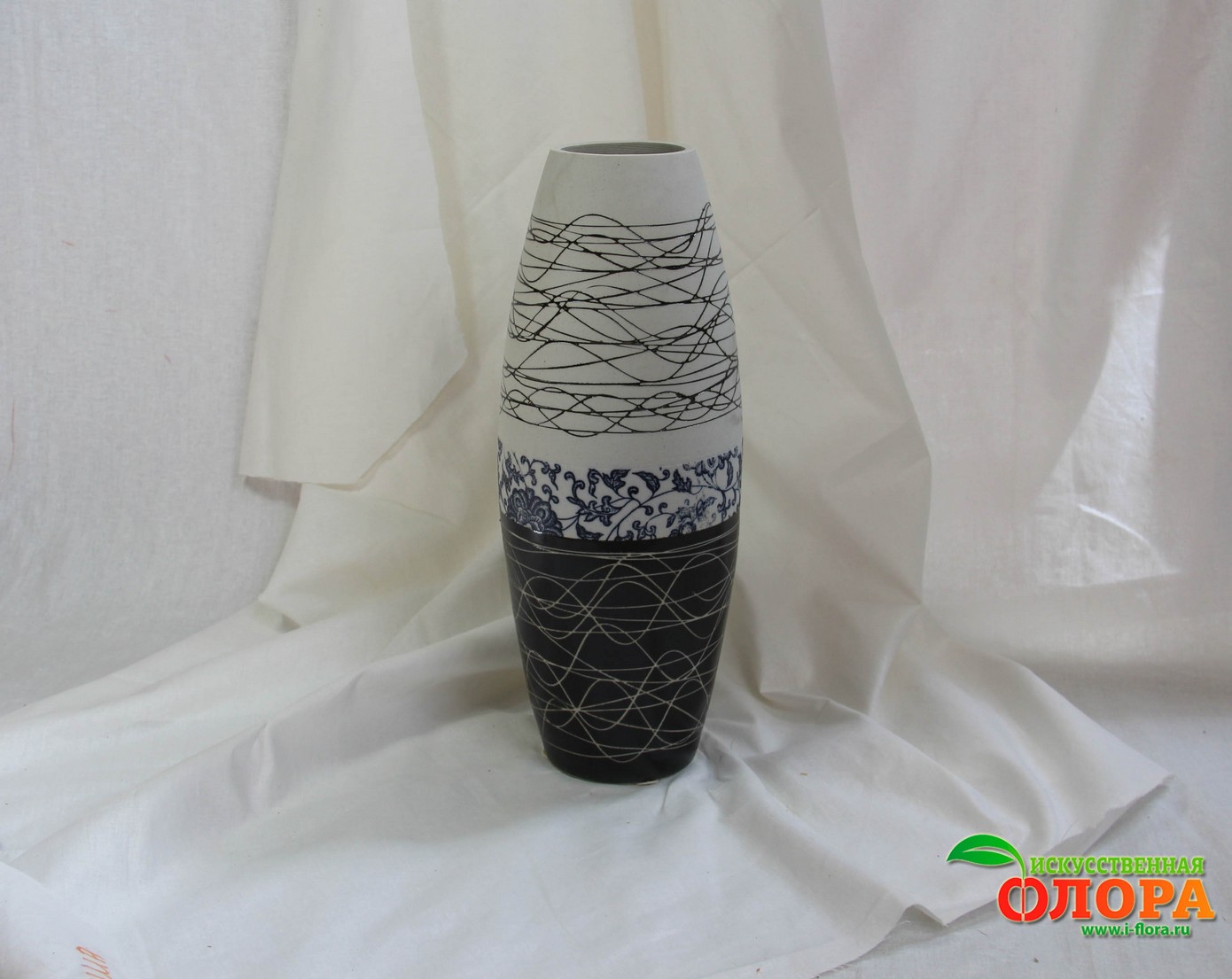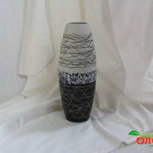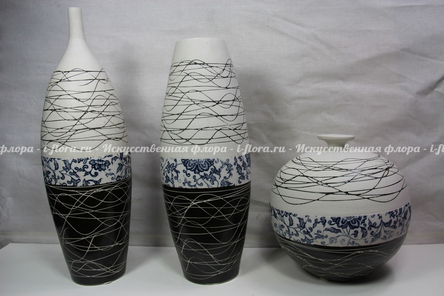 Коллекция фарфоровых ваз авторской работы. В вазах присутствуют две фактуры-матовая белая, глянцевая тёмно-коричневая, разделяются красивым синим рисунком. Линии на вазе выполнены в технике резьбы.