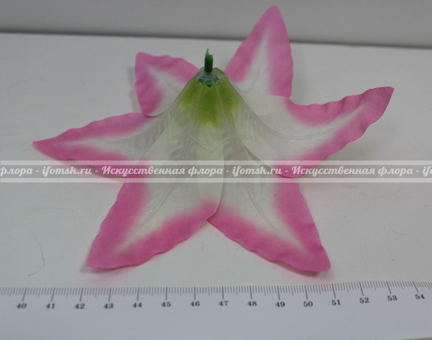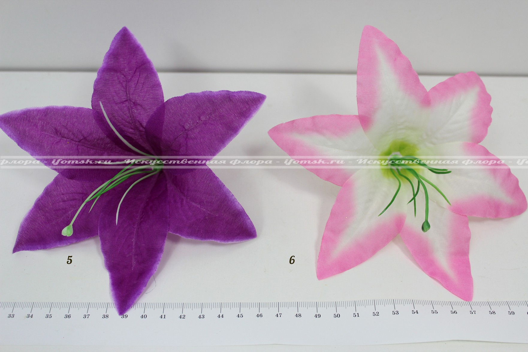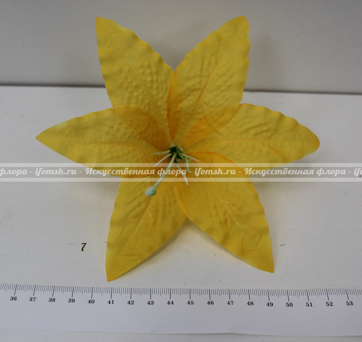 Ткань-шёлк, хорошо накрахмалена и держит форму лепестков. Цветок идёт в разобранном виде: 1-слой ткани 2-тычинки.