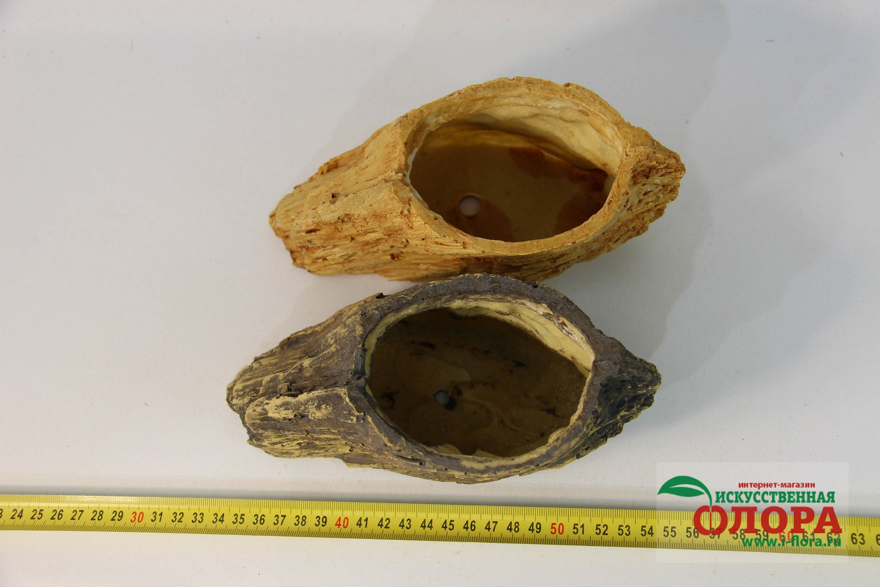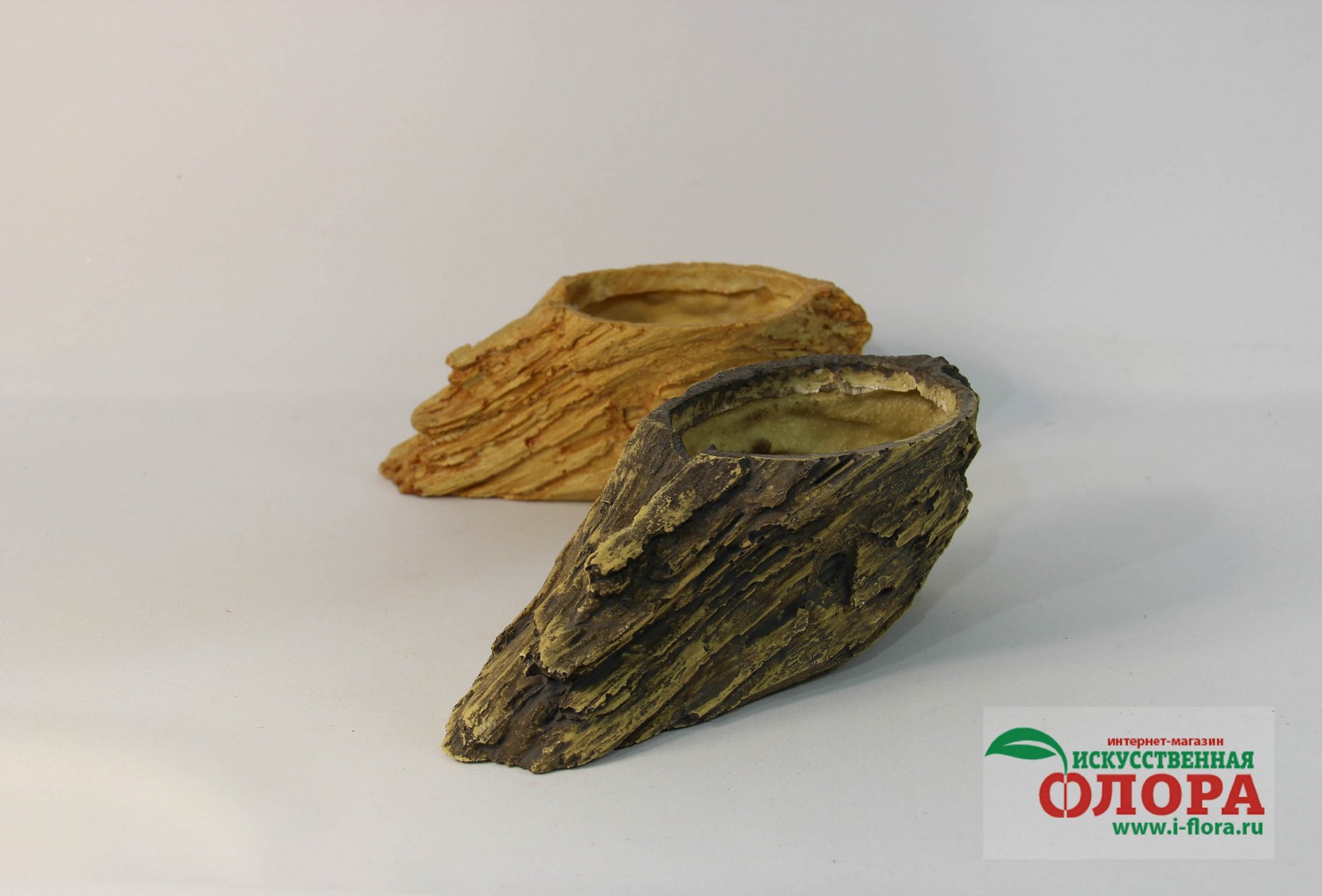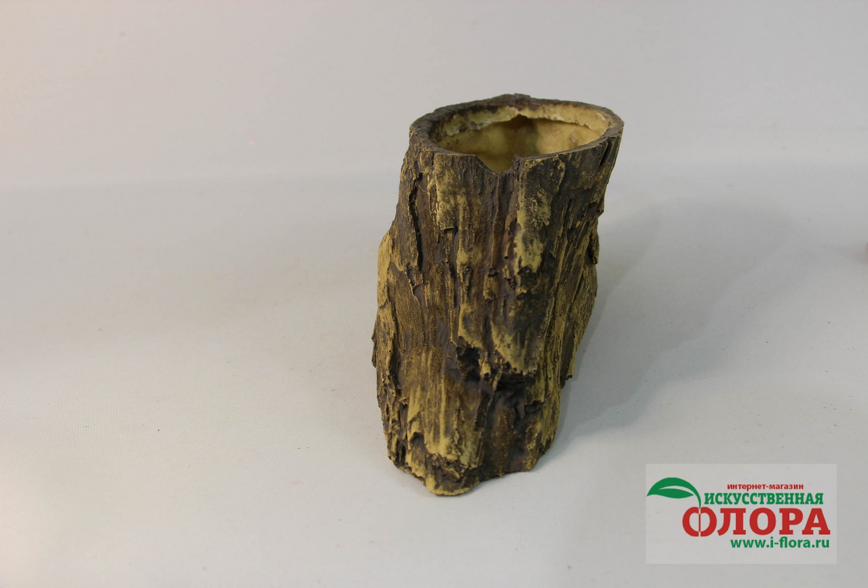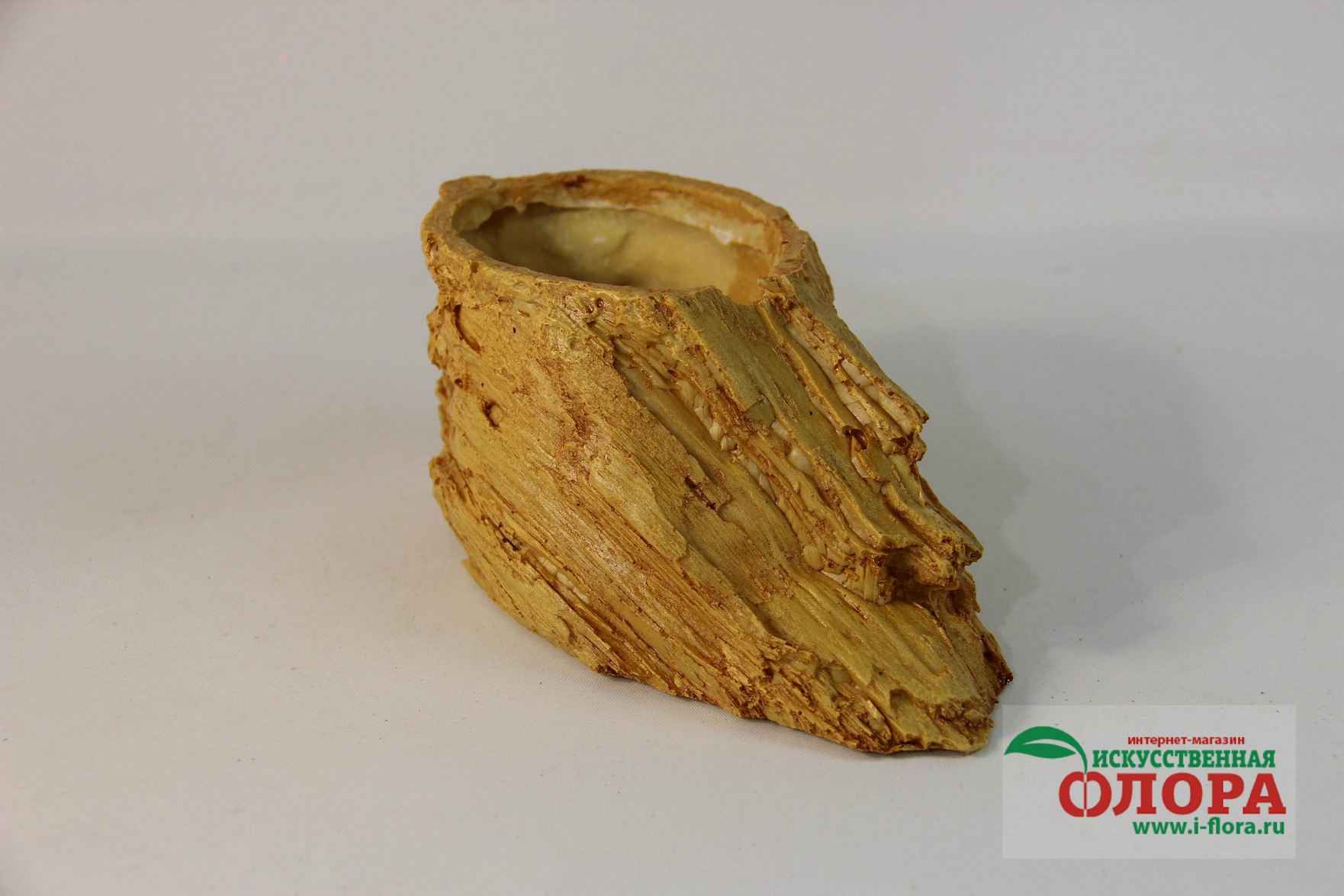 Кашпо выполнено из цельной мастики с ручной росписью. Прекрасная имитация натурального дерева.