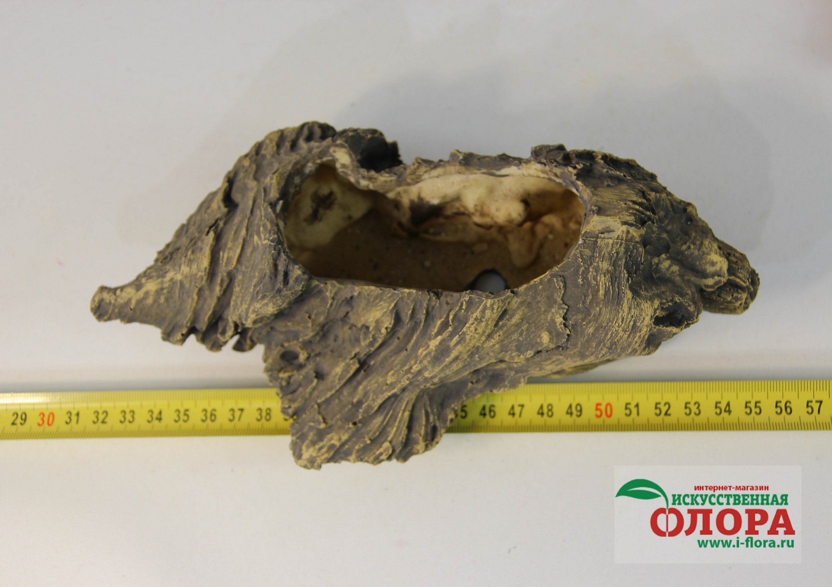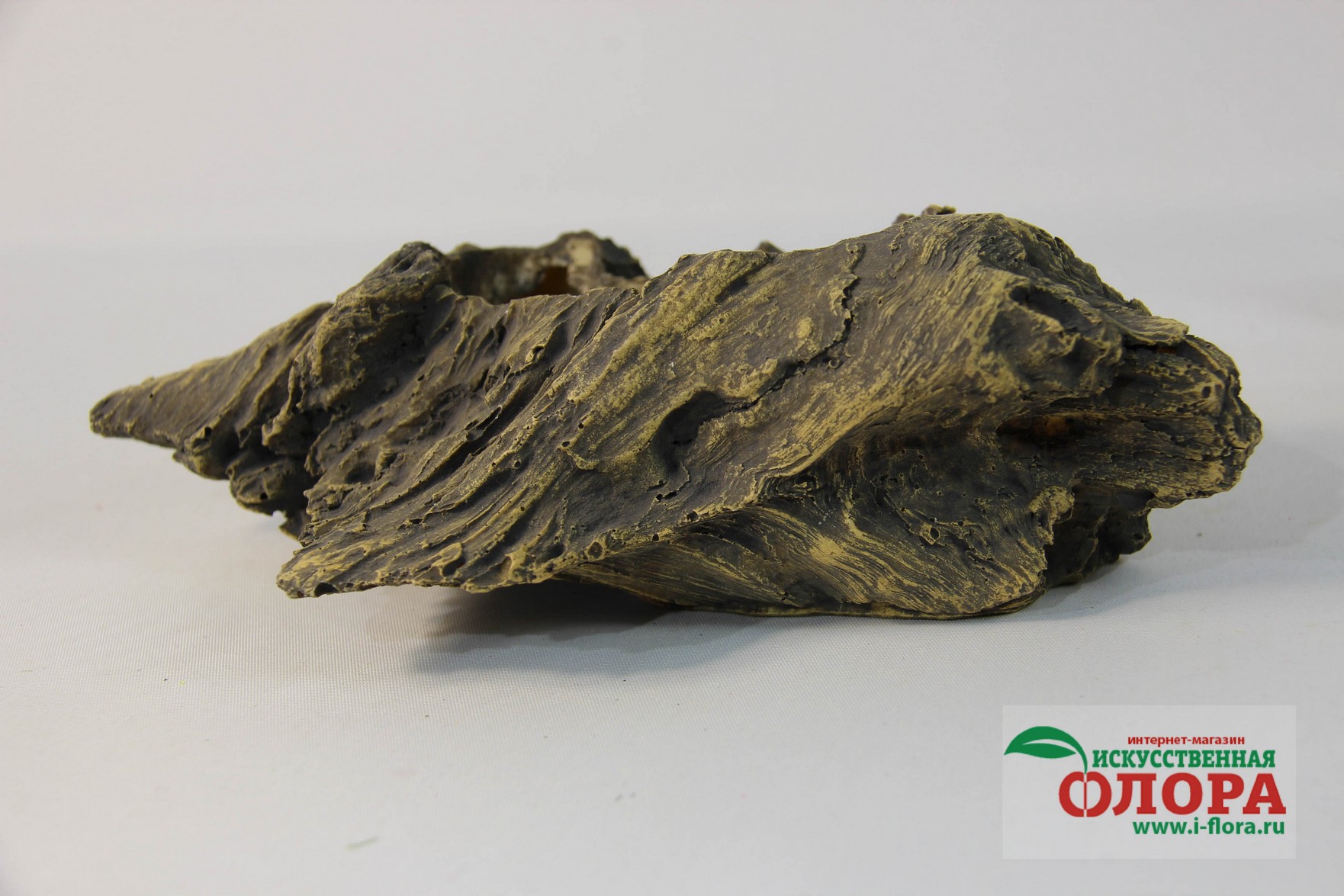 Кашпо выполнено из цельной мастики с ручной росписью. Прекрасная имитация натурального дерева.