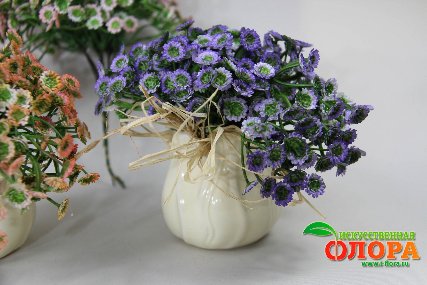 Композиция с пластиковыми хризантемками. Цена за 1 штуку.