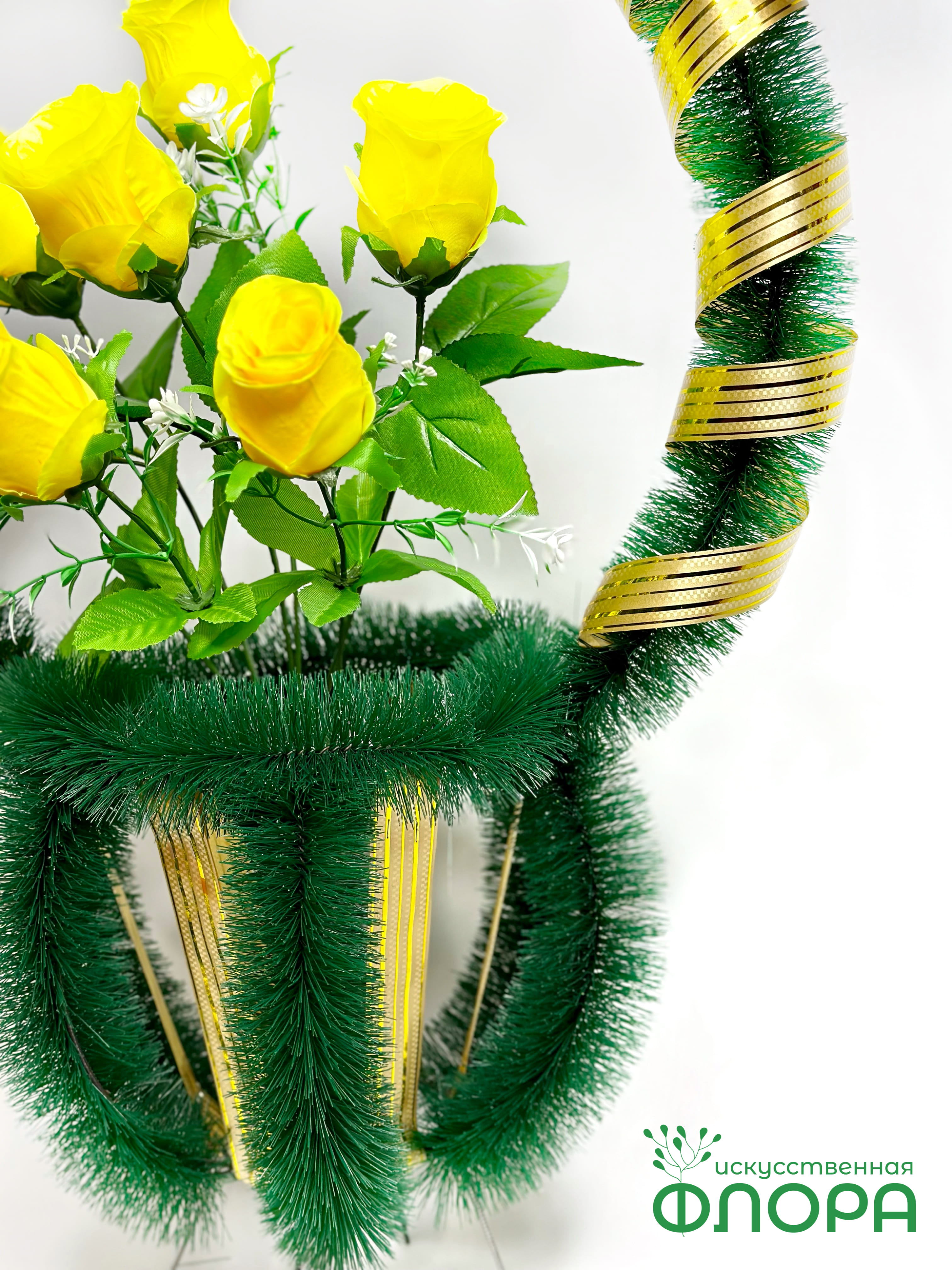 Корзина "Фонарик": состоит из 7-ми голового букета Розы (Бутон), качественного ерша, ленты.
