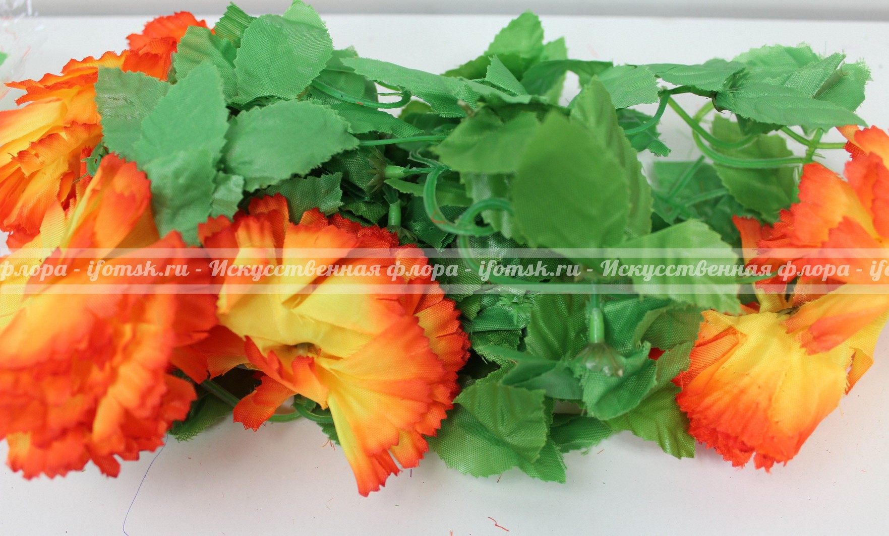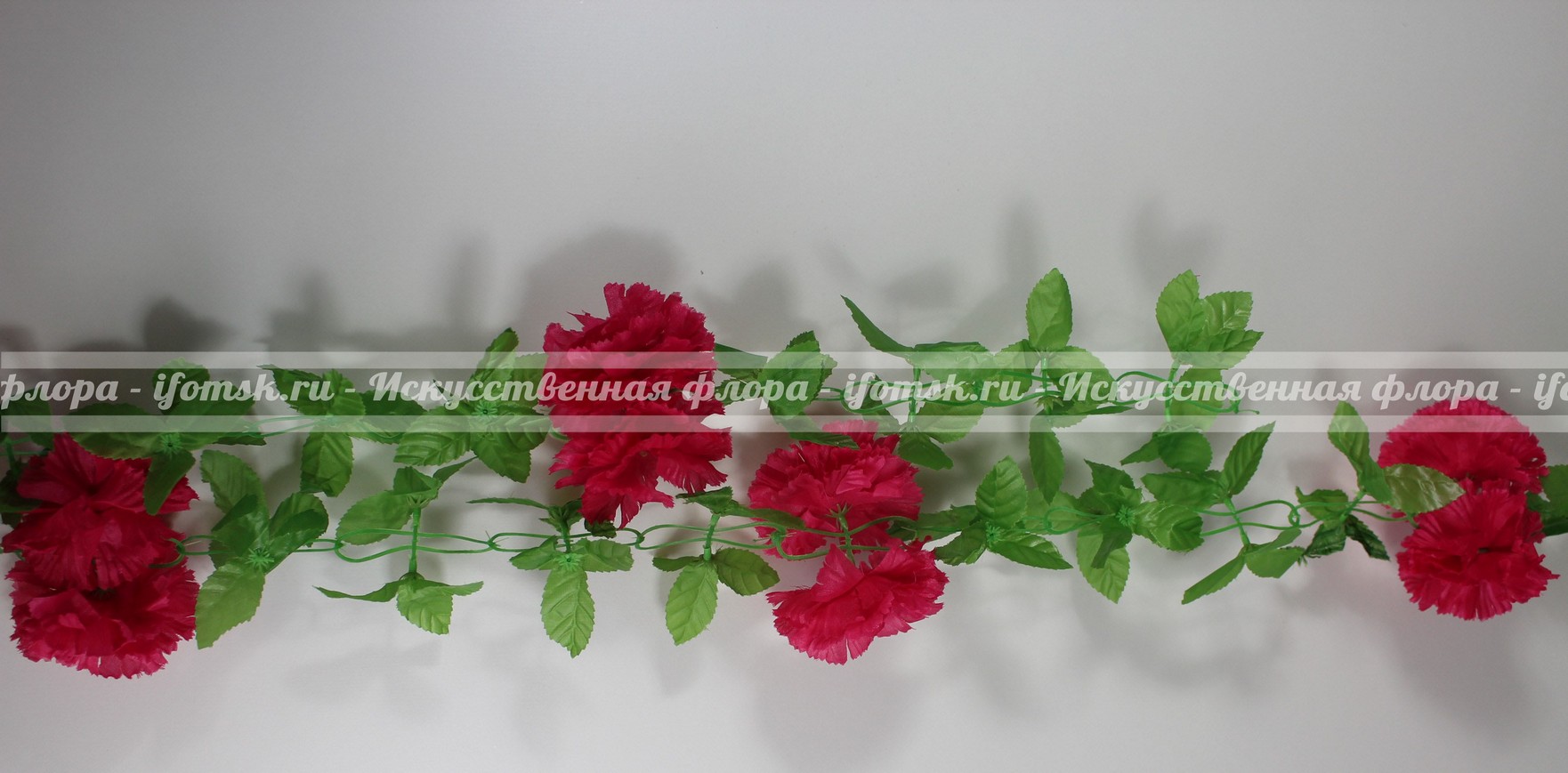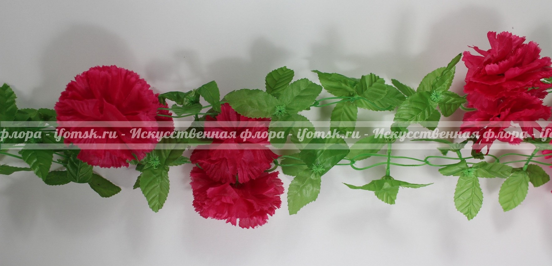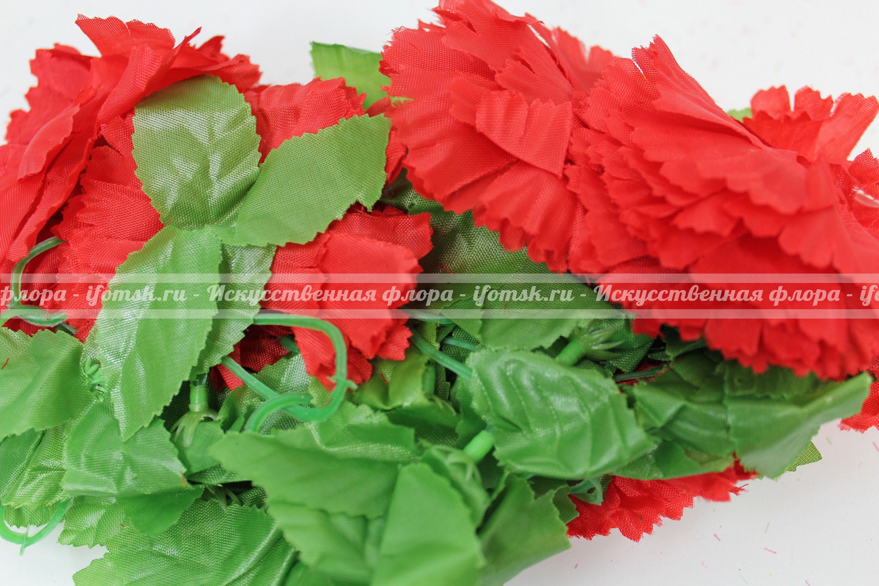 Лиана-цепочка с гвоздикой и листьями (12 цветков, 50 листьев) Длина лианы - 2,1 метра. Продажа упаковкой. Фабричная упаковка - 10 штук - цвет микс (розовый, красный, малиновый, сиреневый, жёлтый, оранжевый). Цена за упаковку 10 штук - микс. Диаметр: 80мм.