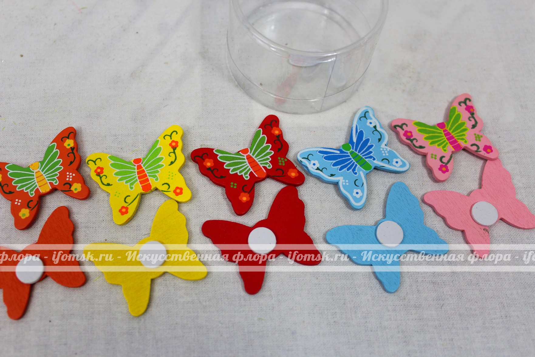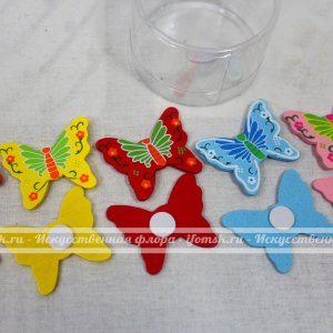 Набор бабочек на липе, в круглой коробке. Материал бабочек - дерево.