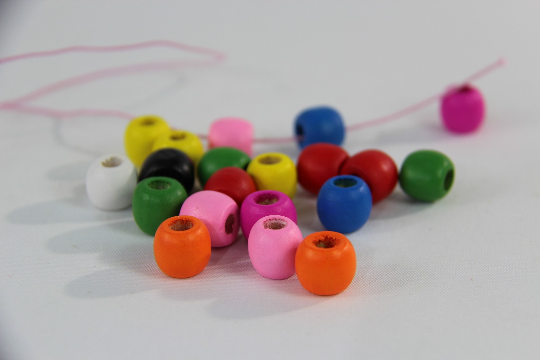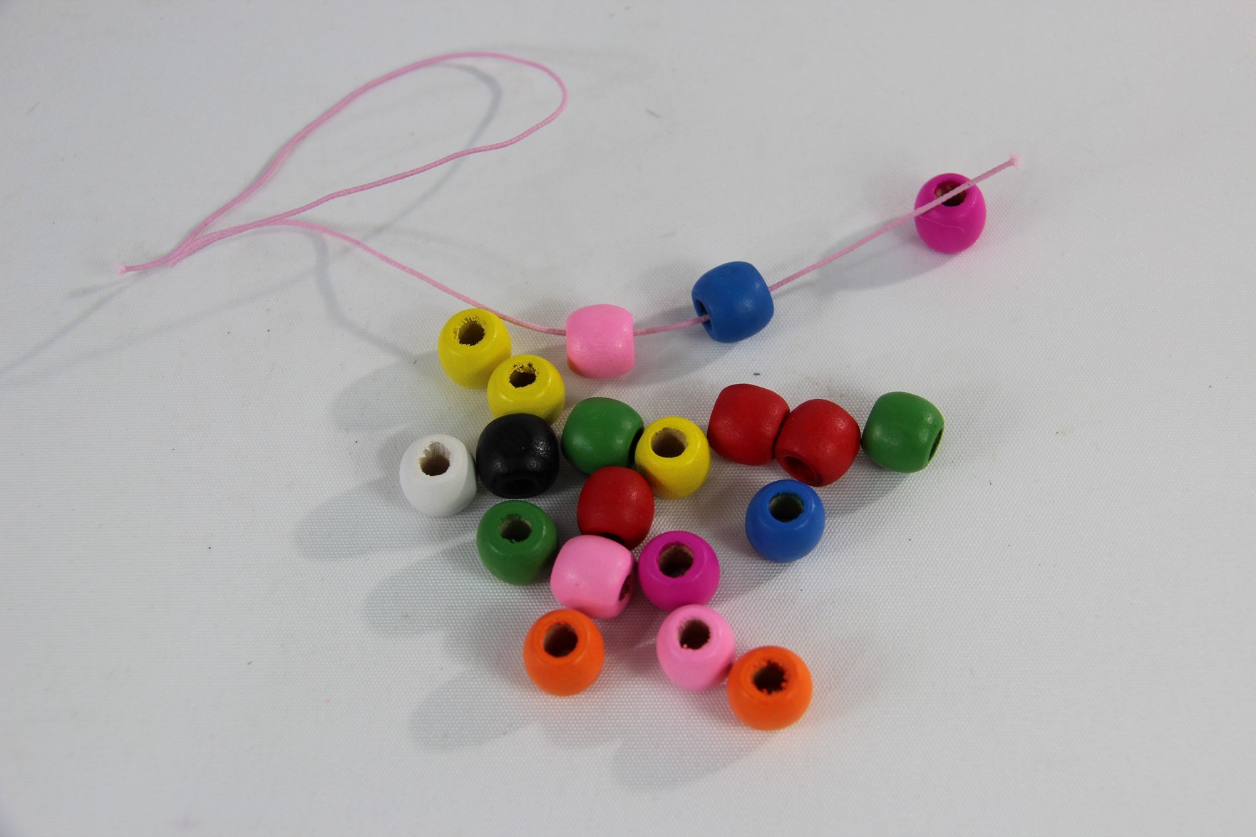 В упаковке разноцветные деревянные бусы с отверстием + цветная
