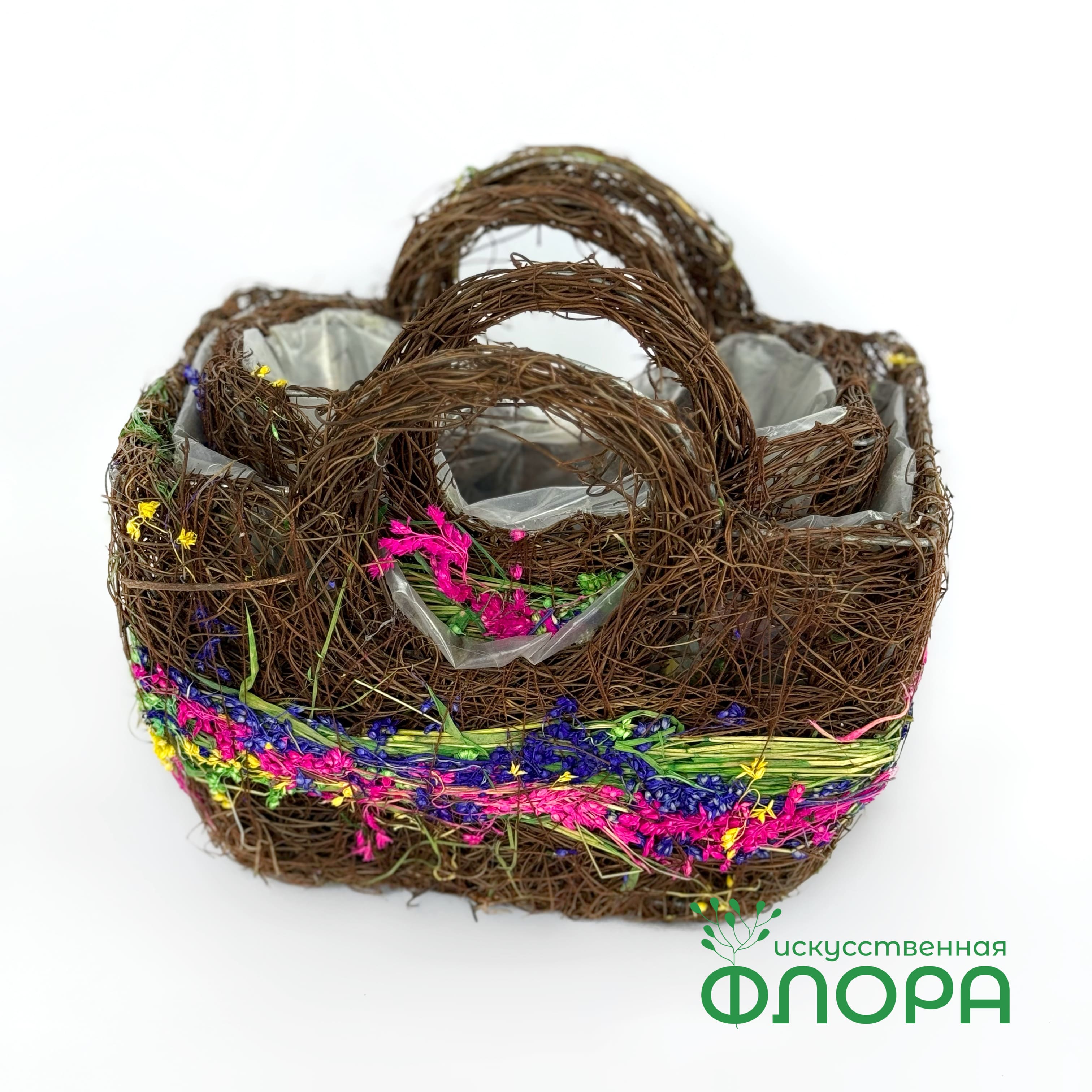 Набор кашпо из травы "Корзинки" (арт.DSM16L002)
