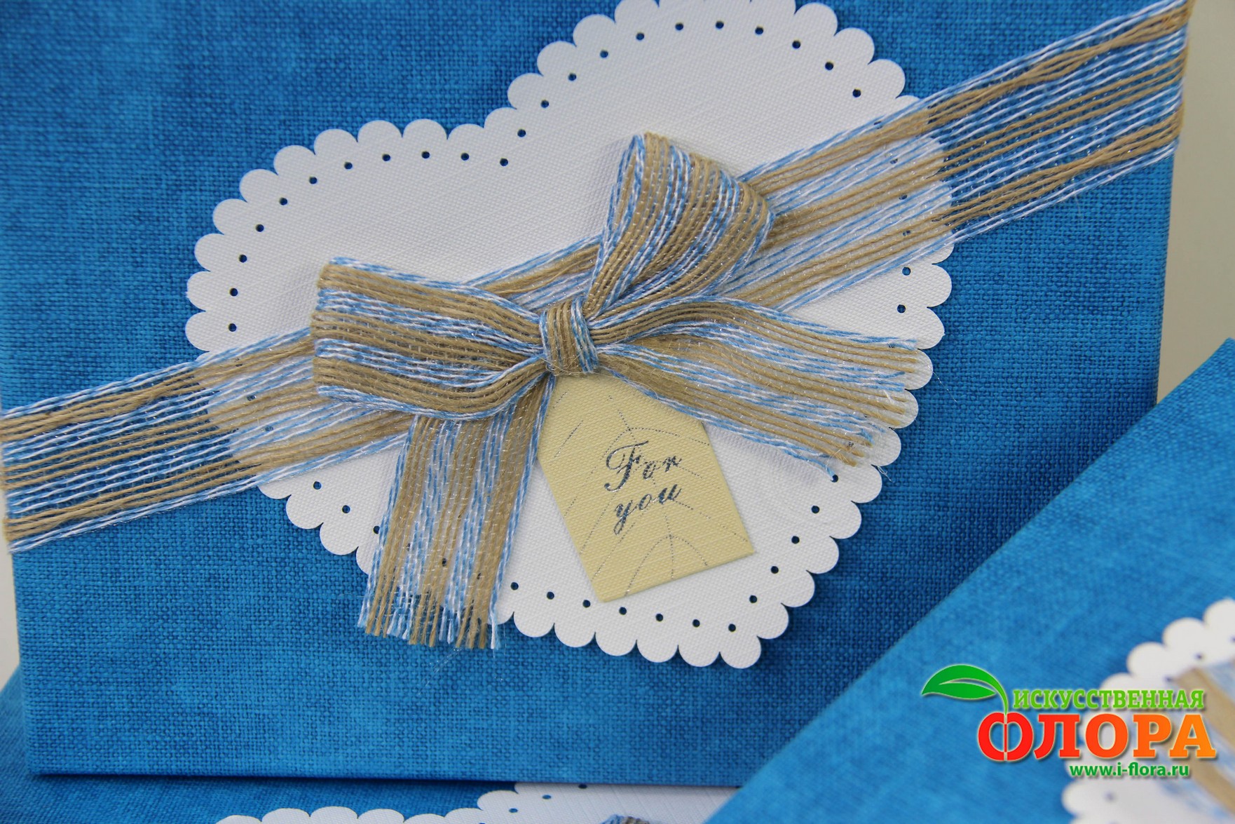 Материал: плотный картон оклеен бумагой под лён с рельефной фактурой. Крышка украшена накладным сердечком с фестонами по краю ленточкой из льна. Внутри коробочки обклеены плотной крафт бумагой.