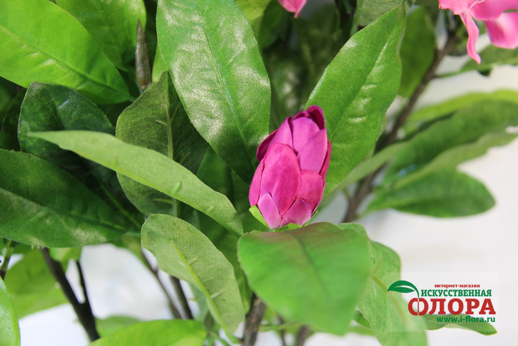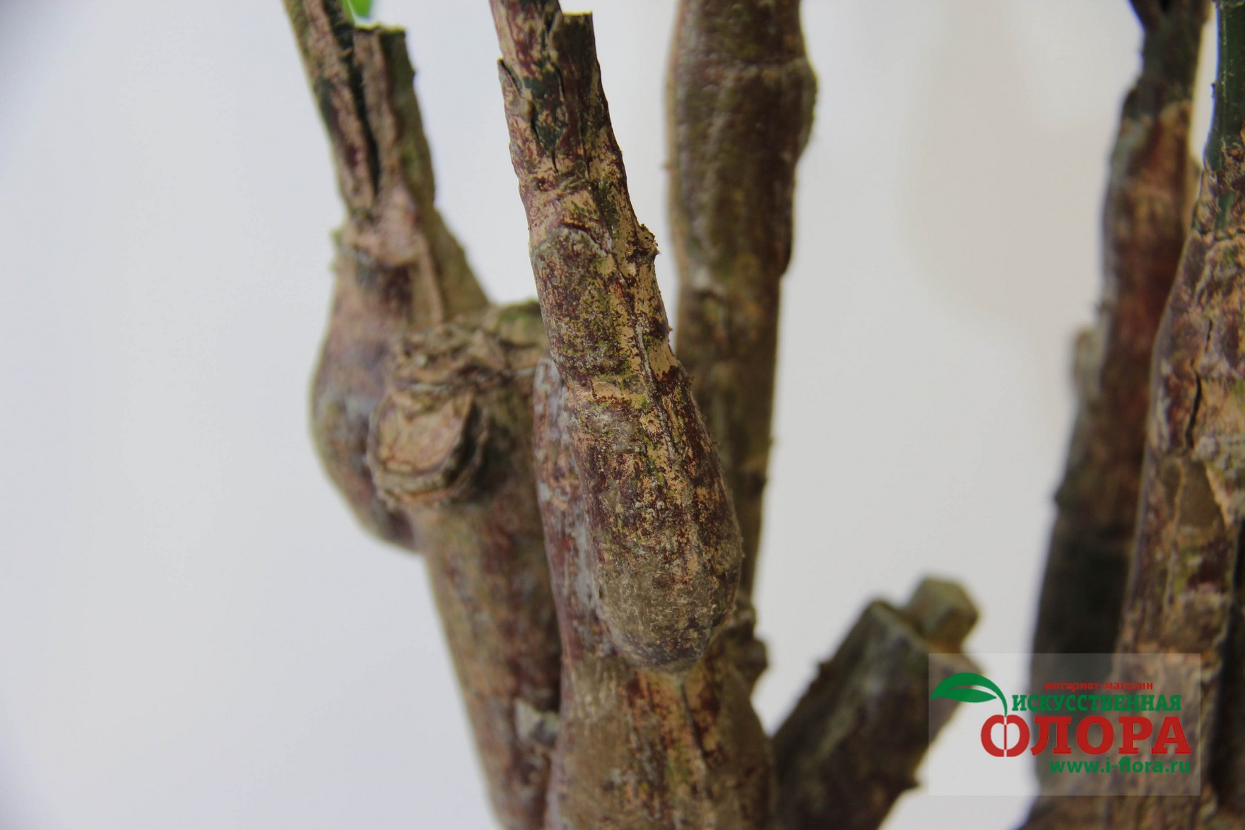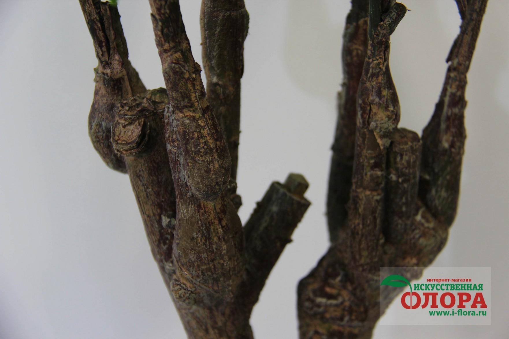 Ствол выполнен из композитных материалов и имеет очень натуральный вид. От основого ствола отходит несколько веток. В основе ствола и веток заложена очень прочная проволочная основа. Листья и цветки из плотной ткани. Товар относится к высшей категории качетсва. Является ботанической копией живого растения.