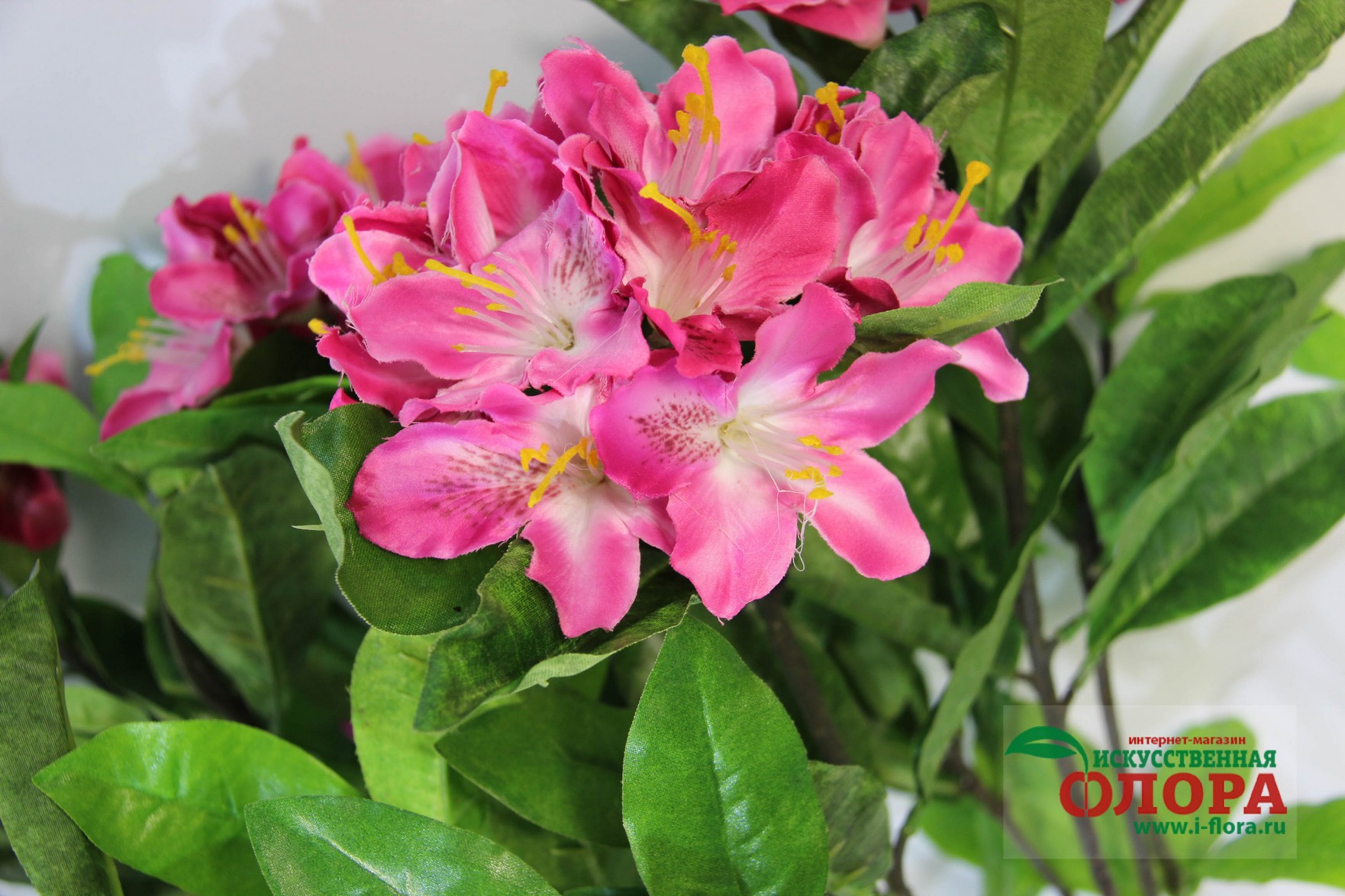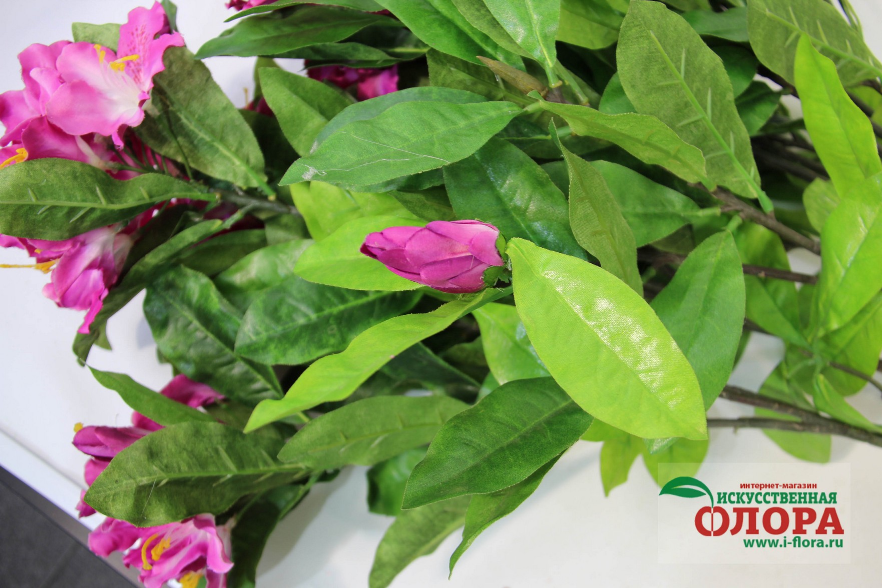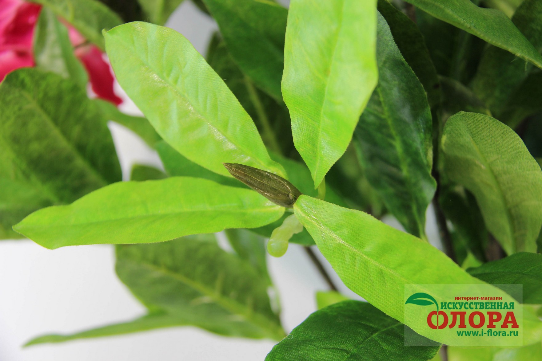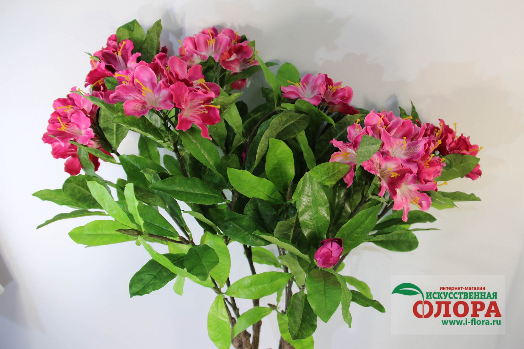 Ствол выполнен из композитных материалов и имеет очень натуральный вид. От основого ствола отходит несколько веток. В основе ствола и веток заложена очень прочная проволочная основа. Листья и цветки из плотной ткани. Товар относится к высшей категории качетсва. Является ботанической копией живого растения.