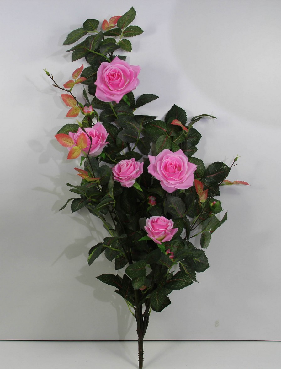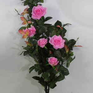 Высокое качество исполнения. Красивые яркие расцветки цветов и листьев. Внутри каждого цветка плотная середина, что позволяет сохранить идеальную форму. Обильная зелень придаёт кусту естественный вид.