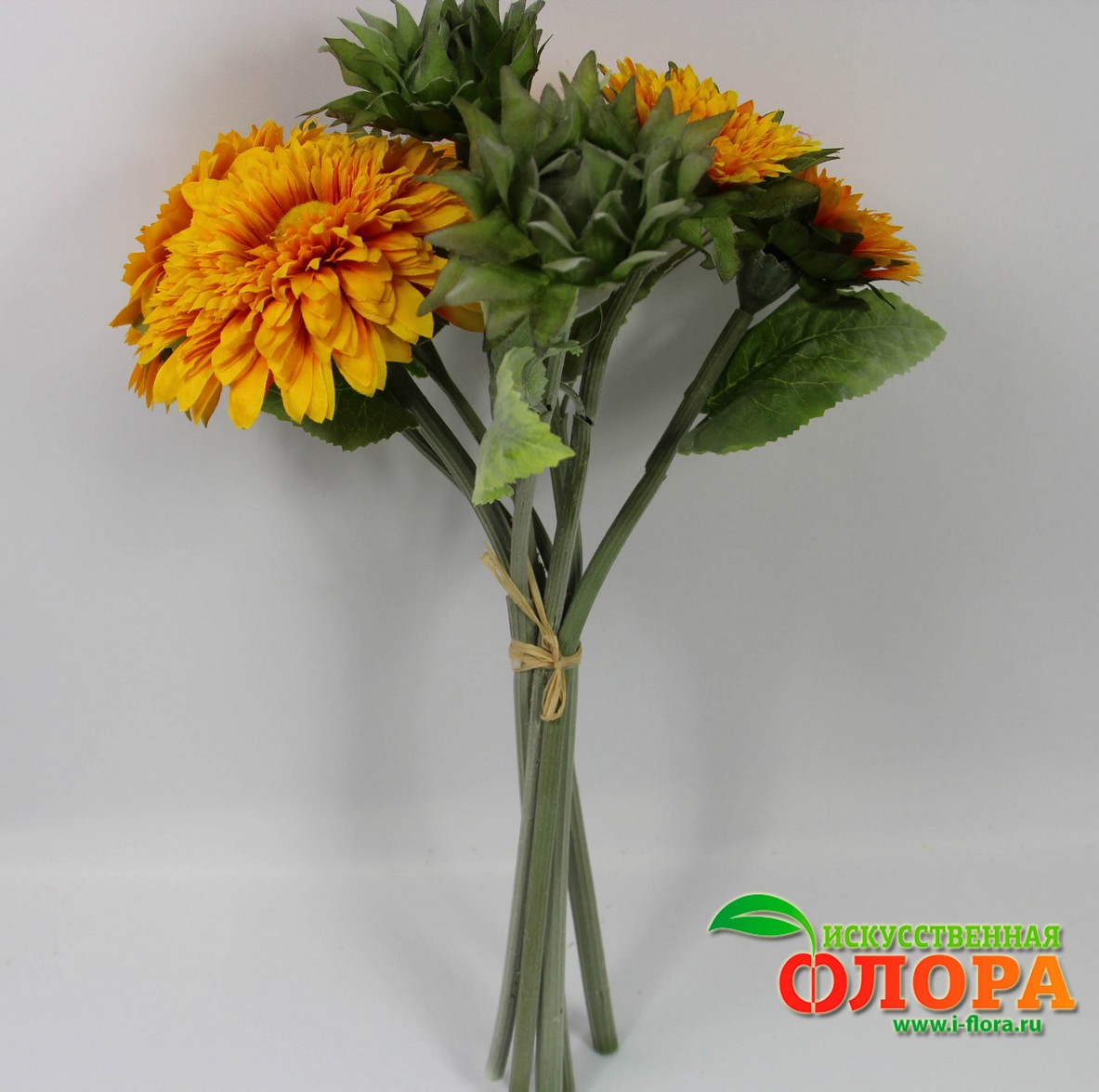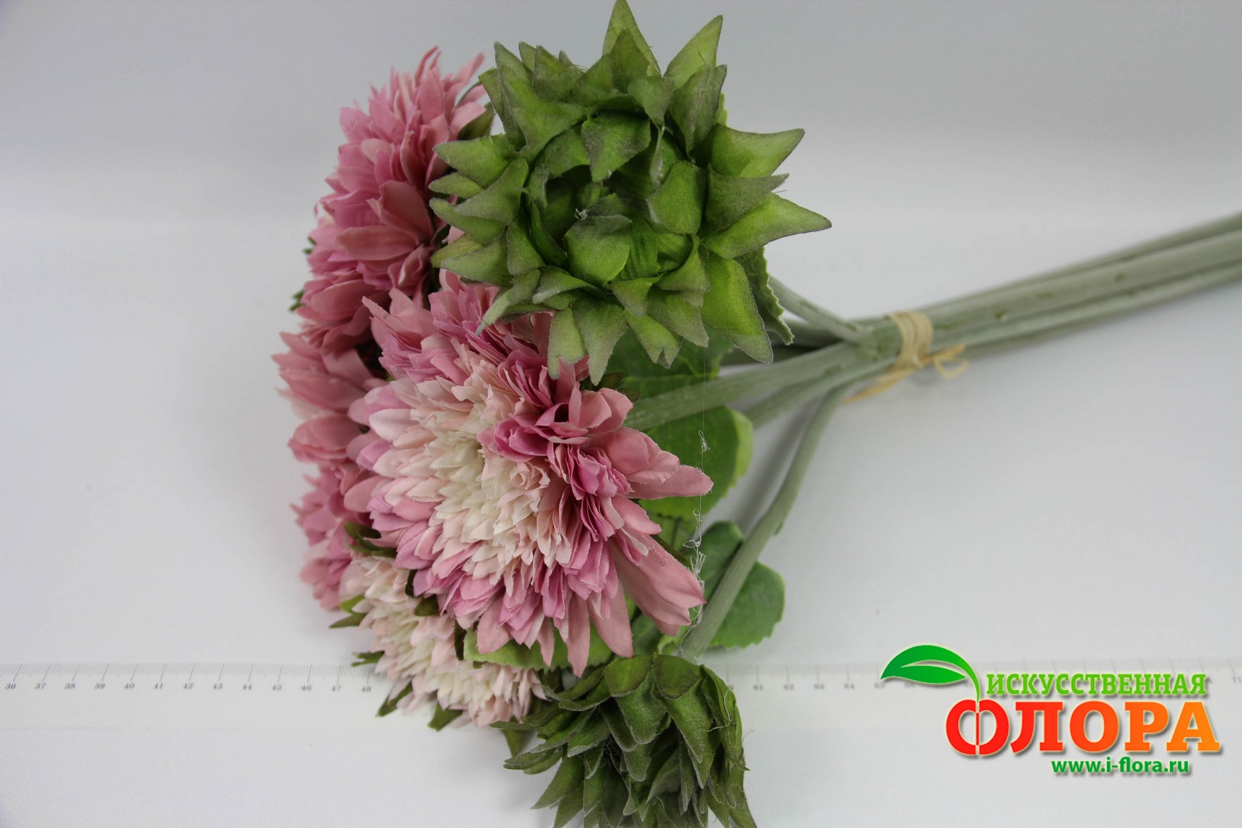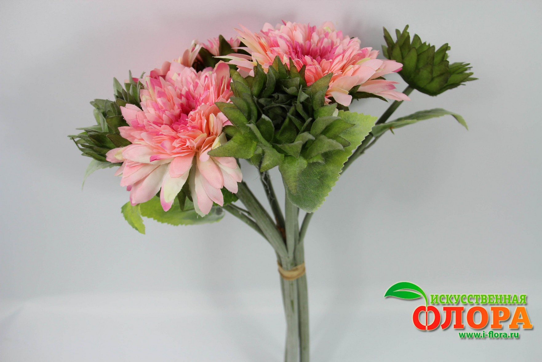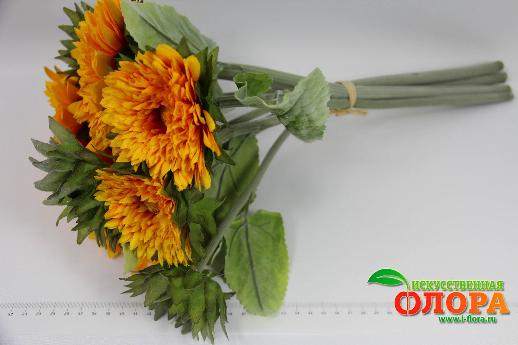 В связке 5 стеблей, 3 крупных цветка D-15 см. и 2 средних цветка D-11 см.+3 бутона.