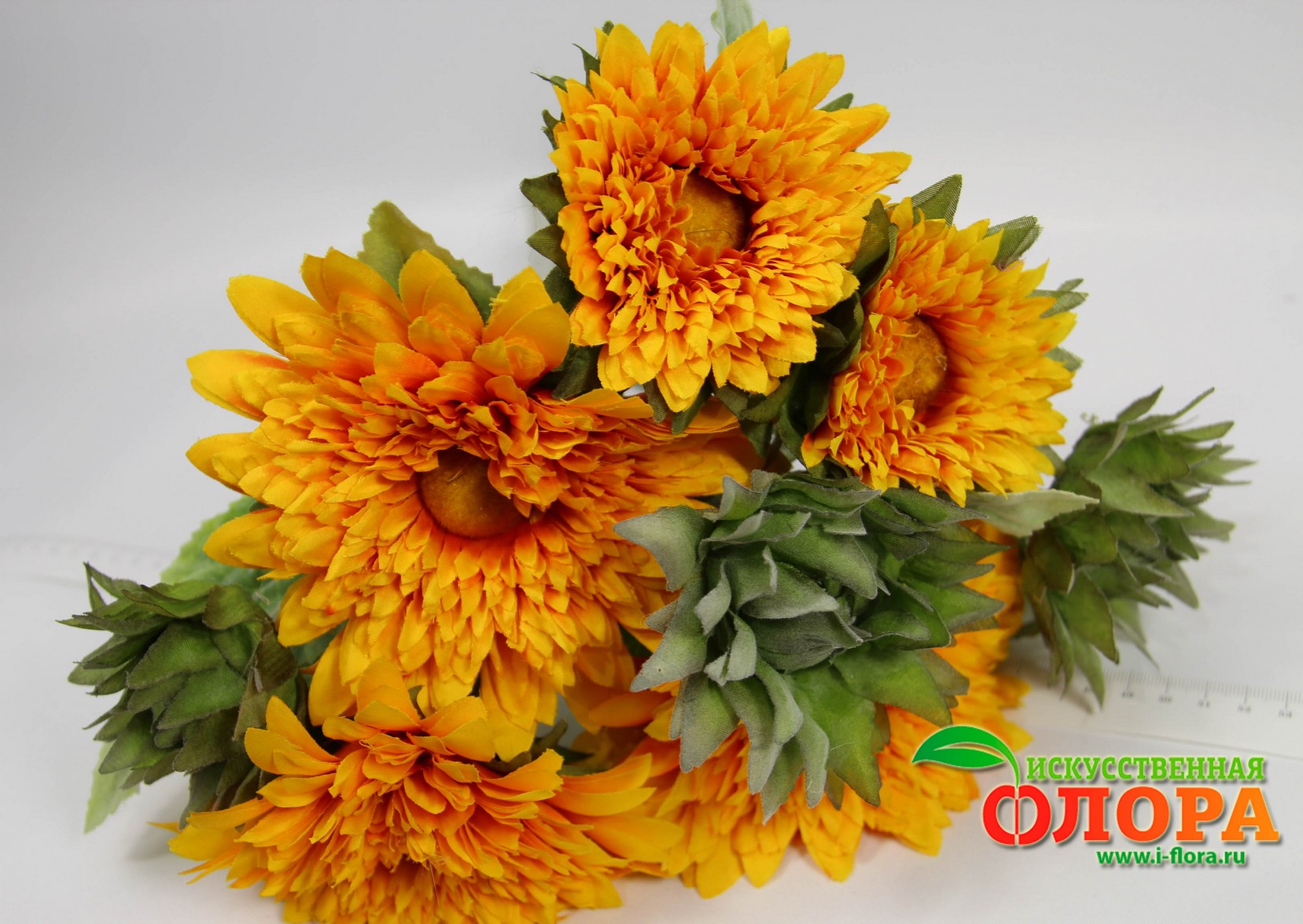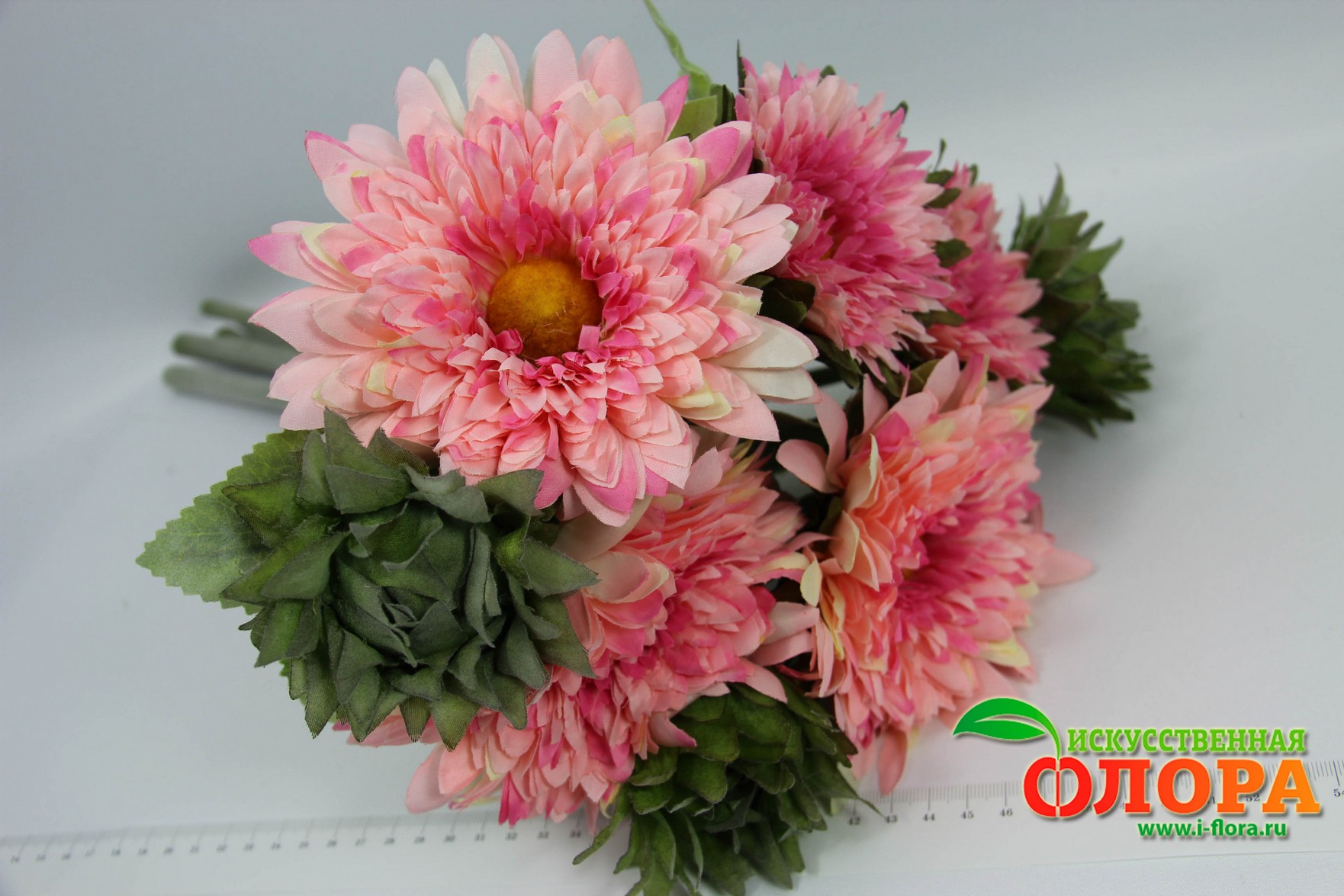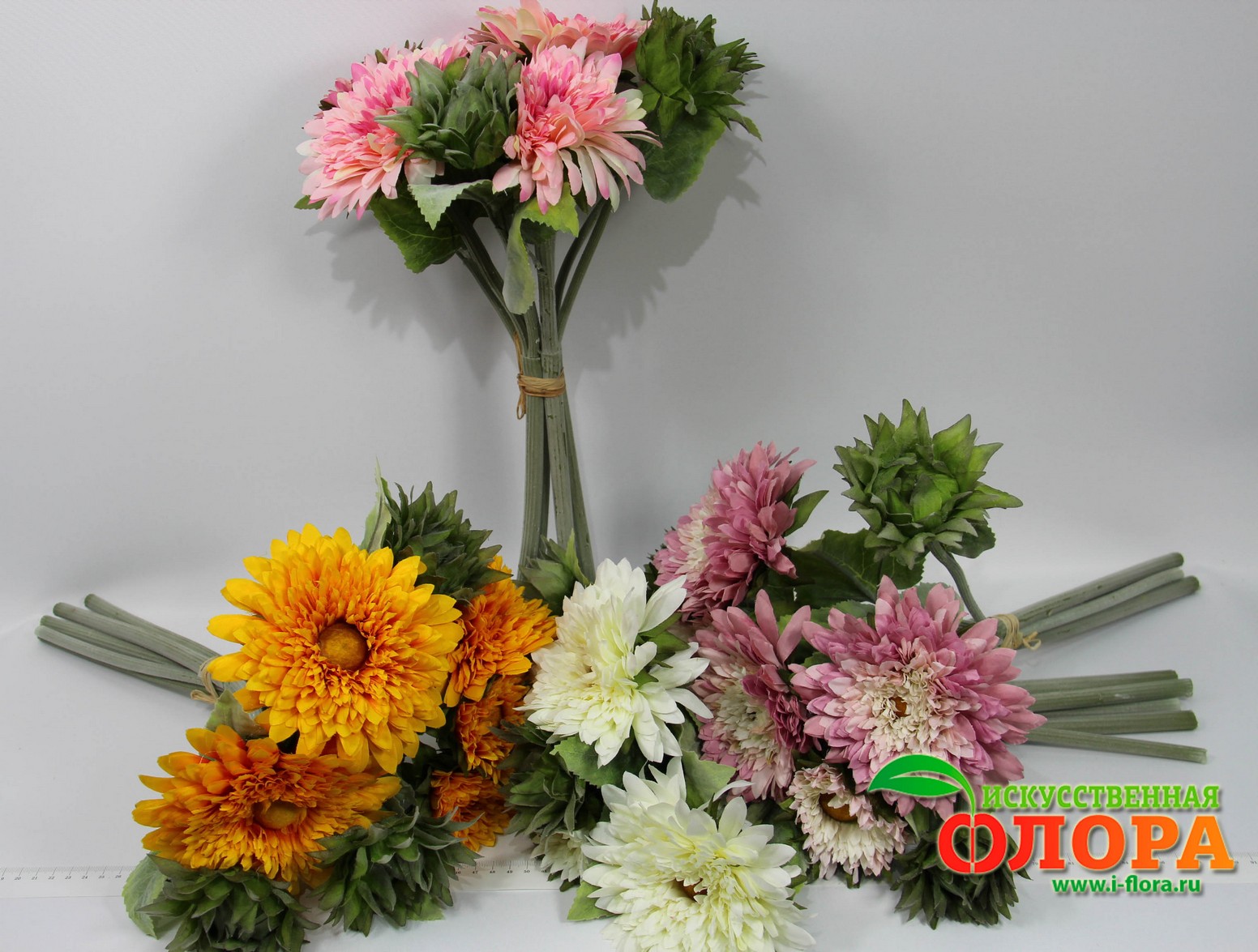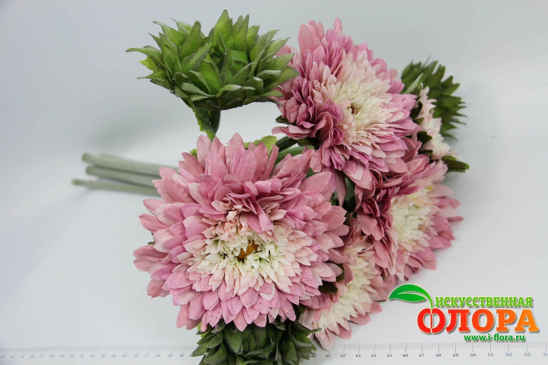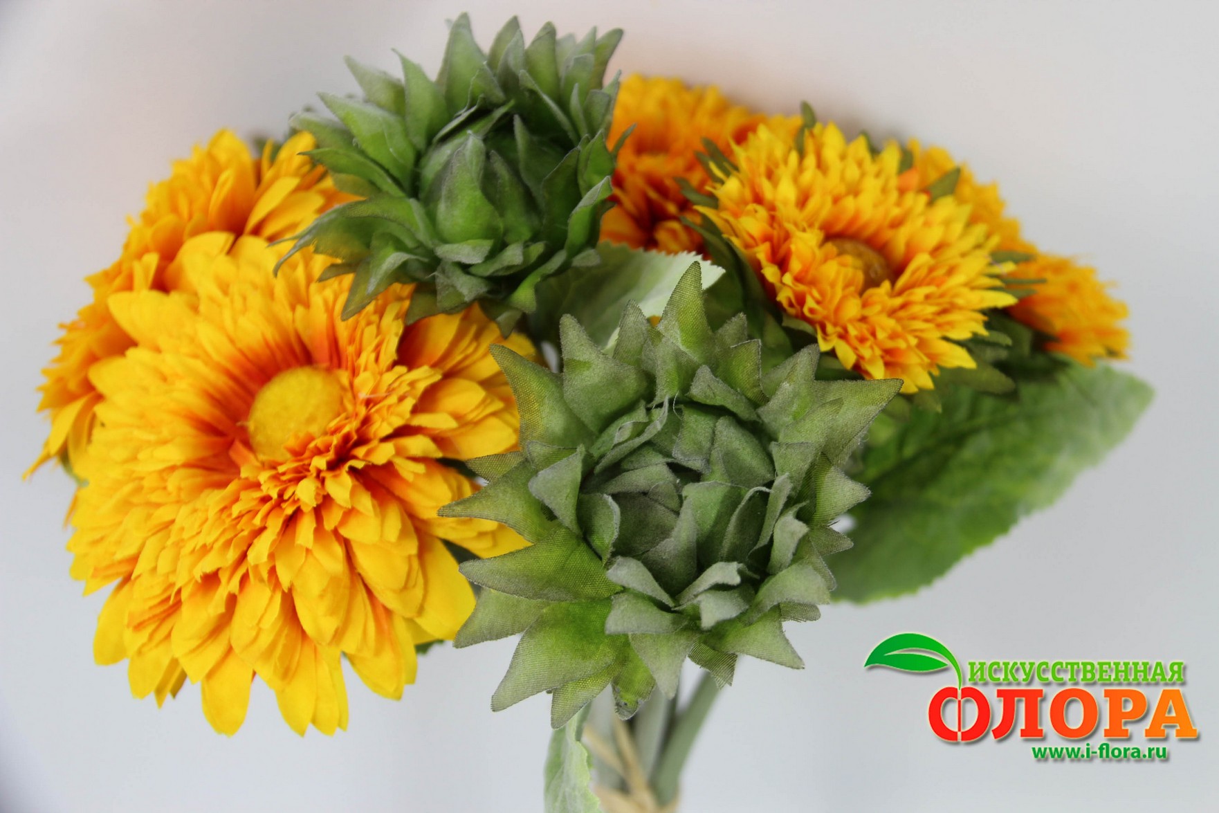 В связке 5 стеблей, 3 крупных цветка D-15 см. и 2 средних цветка D-11 см.+3 бутона.