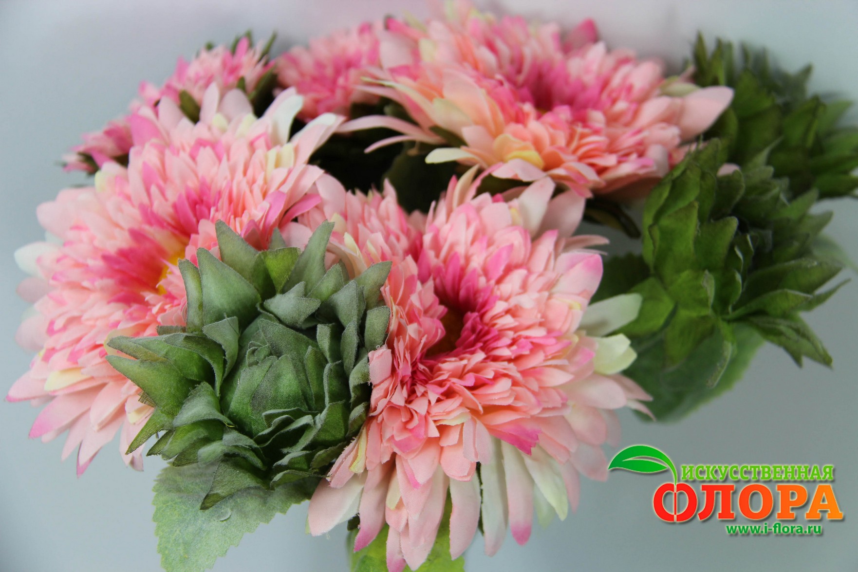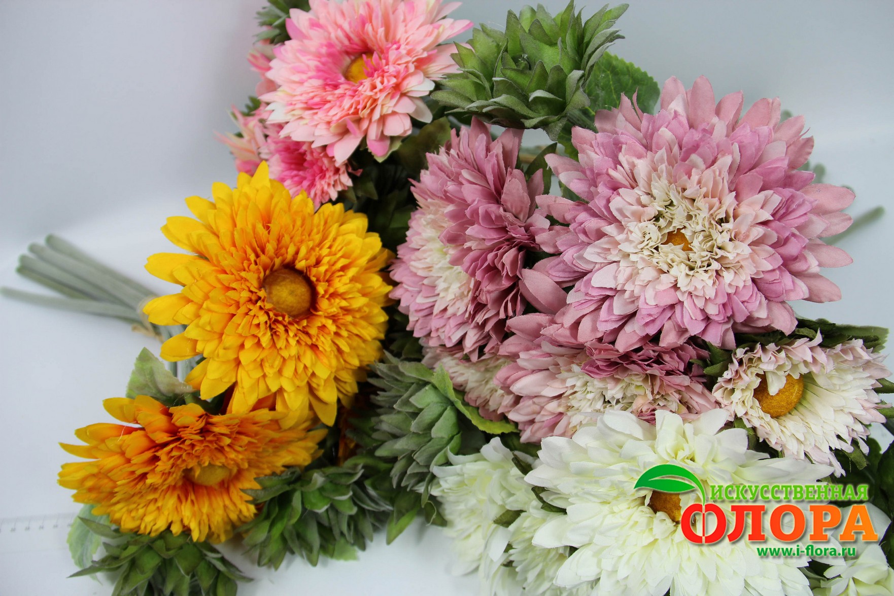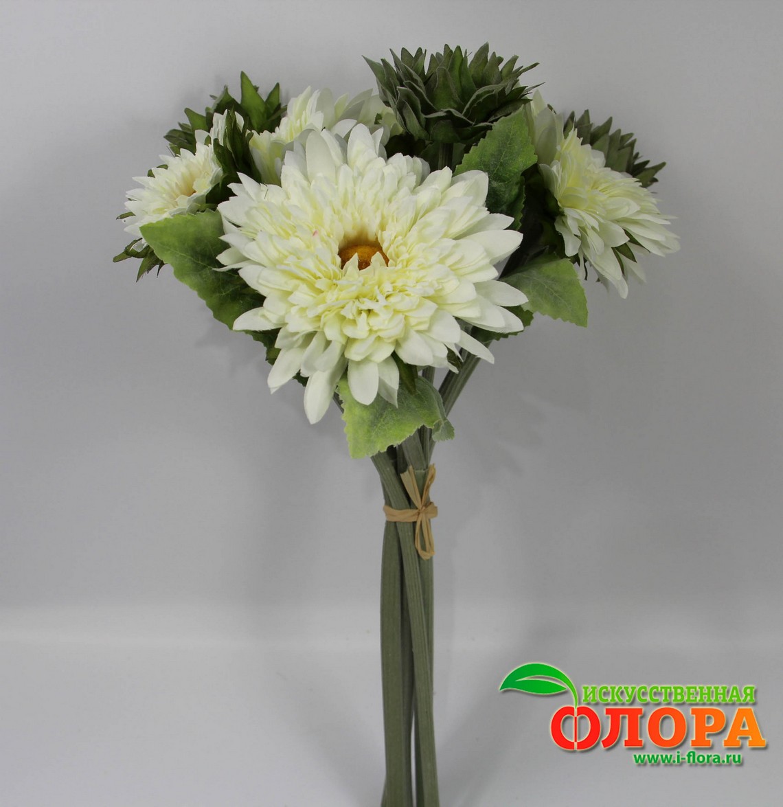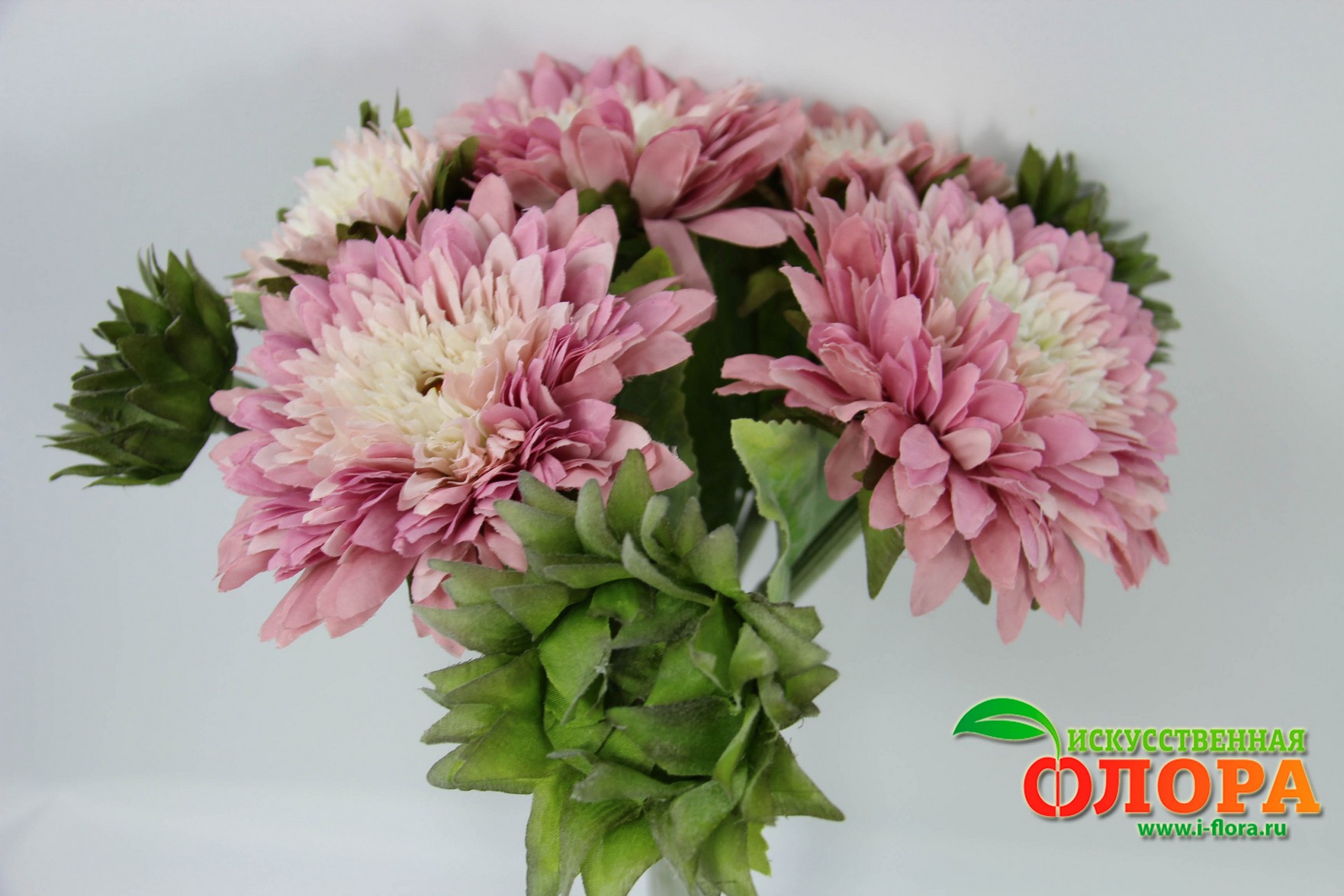 В связке 5 стеблей, 3 крупных цветка D-15 см. и 2 средних цветка D-11 см.+3 бутона.