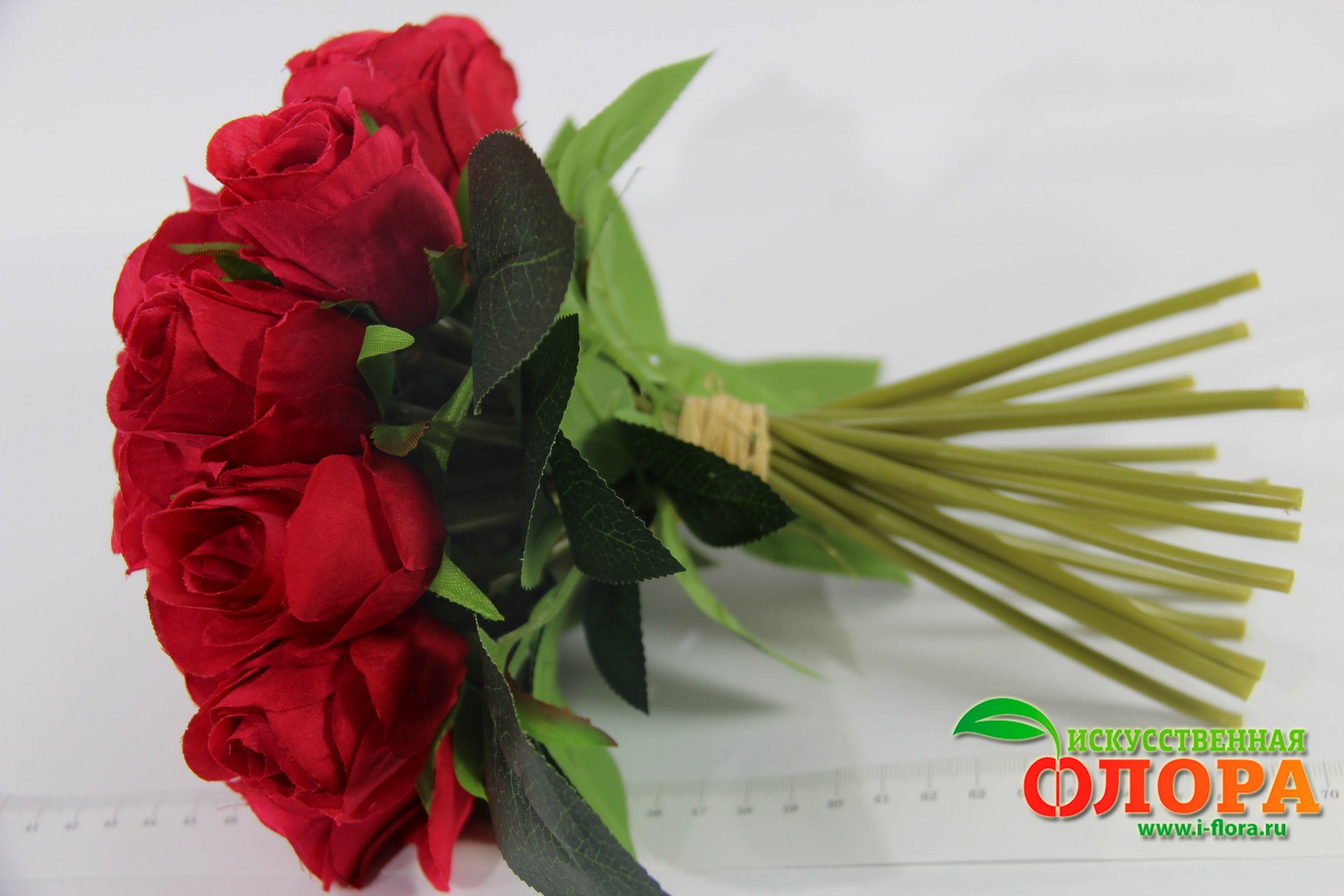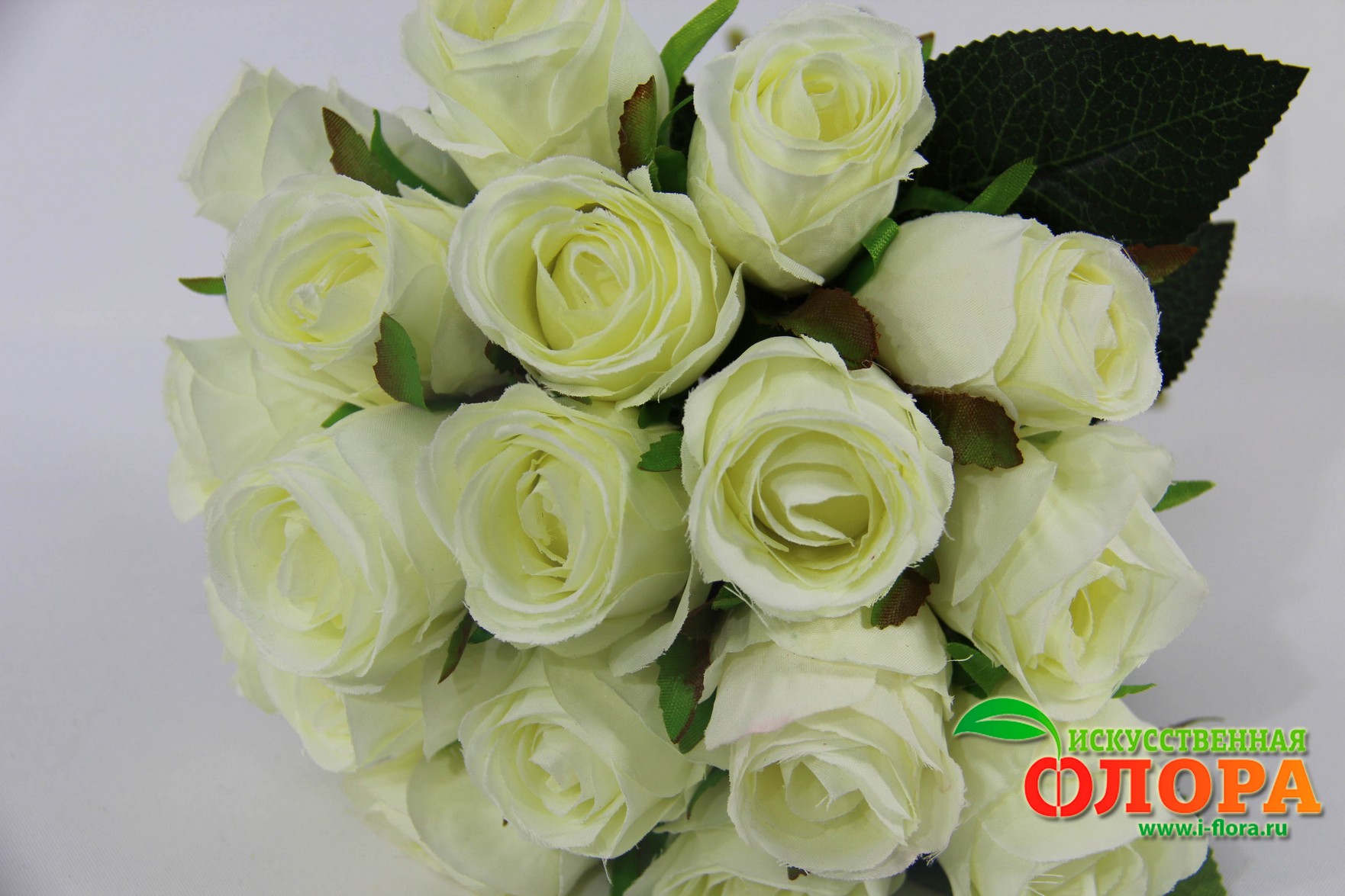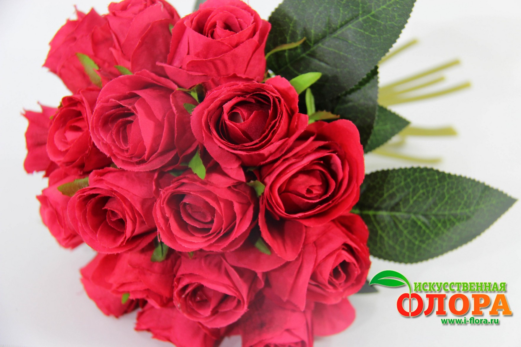 В связке 18 штук, несколько зелёных листьев перевязаны рафией. Цветочная головка имеет плотную серединку, что позволяет сохранить идеальную форму цветка.