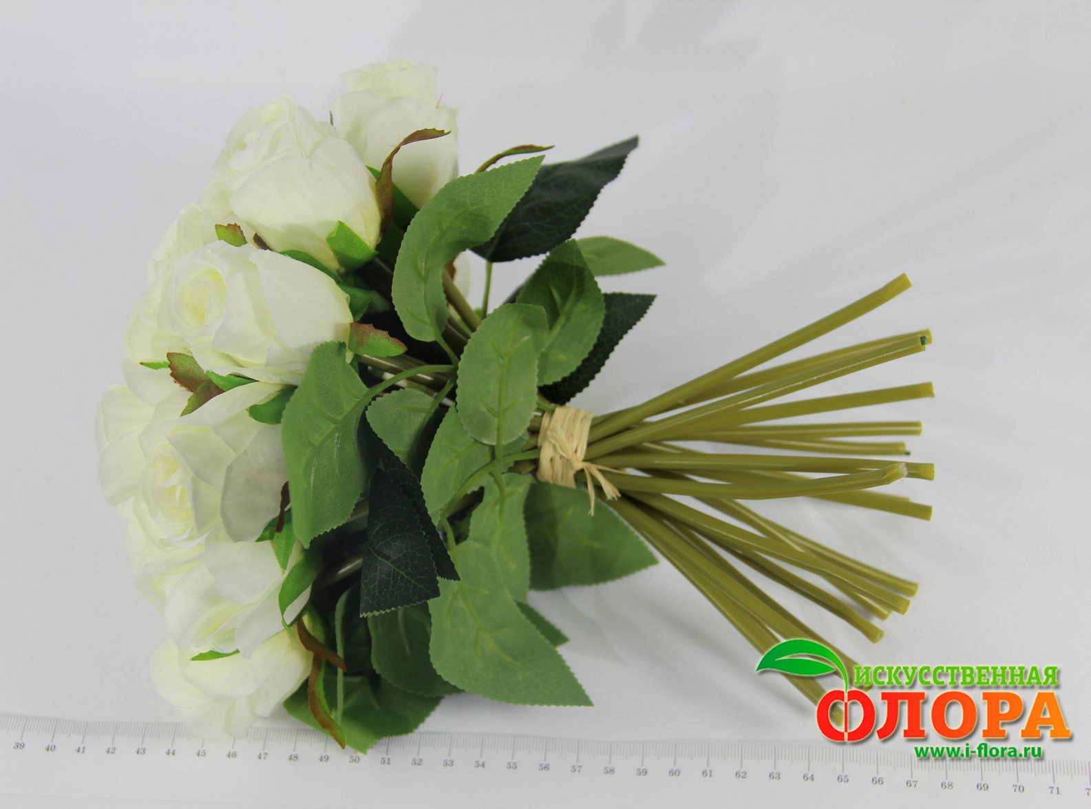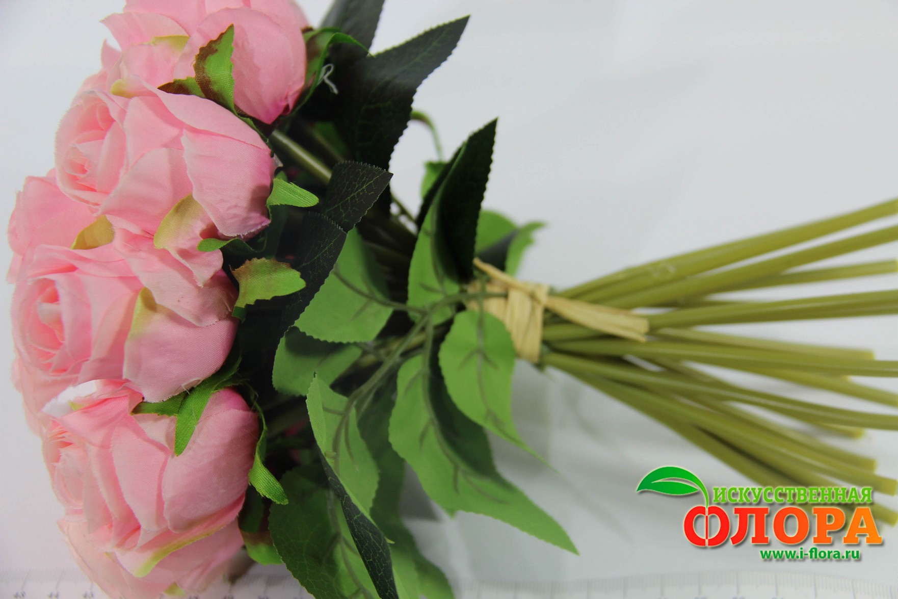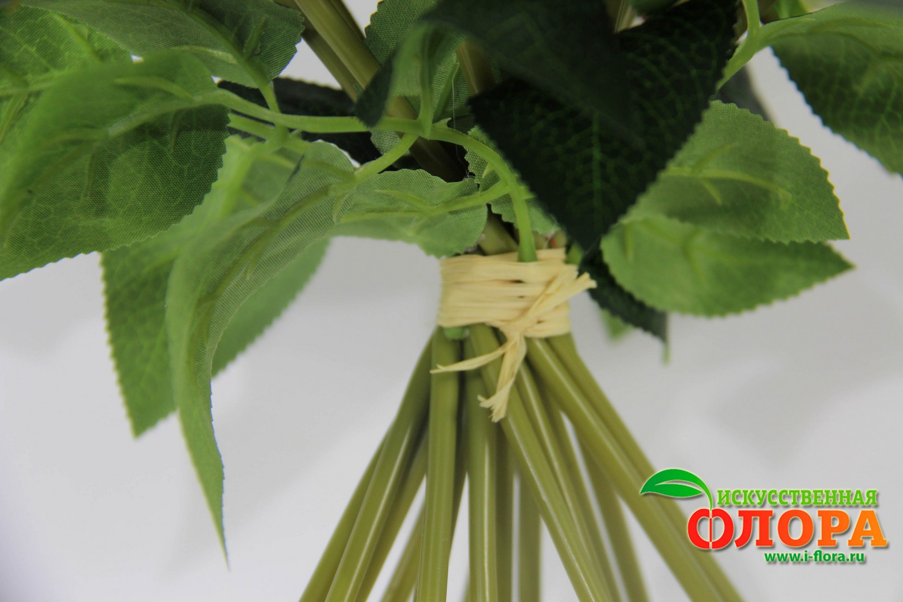 В связке 18 штук, несколько зелёных листьев перевязаны рафией. Цветочная головка имеет плотную серединку, что позволяет сохранить идеальную форму цветка.