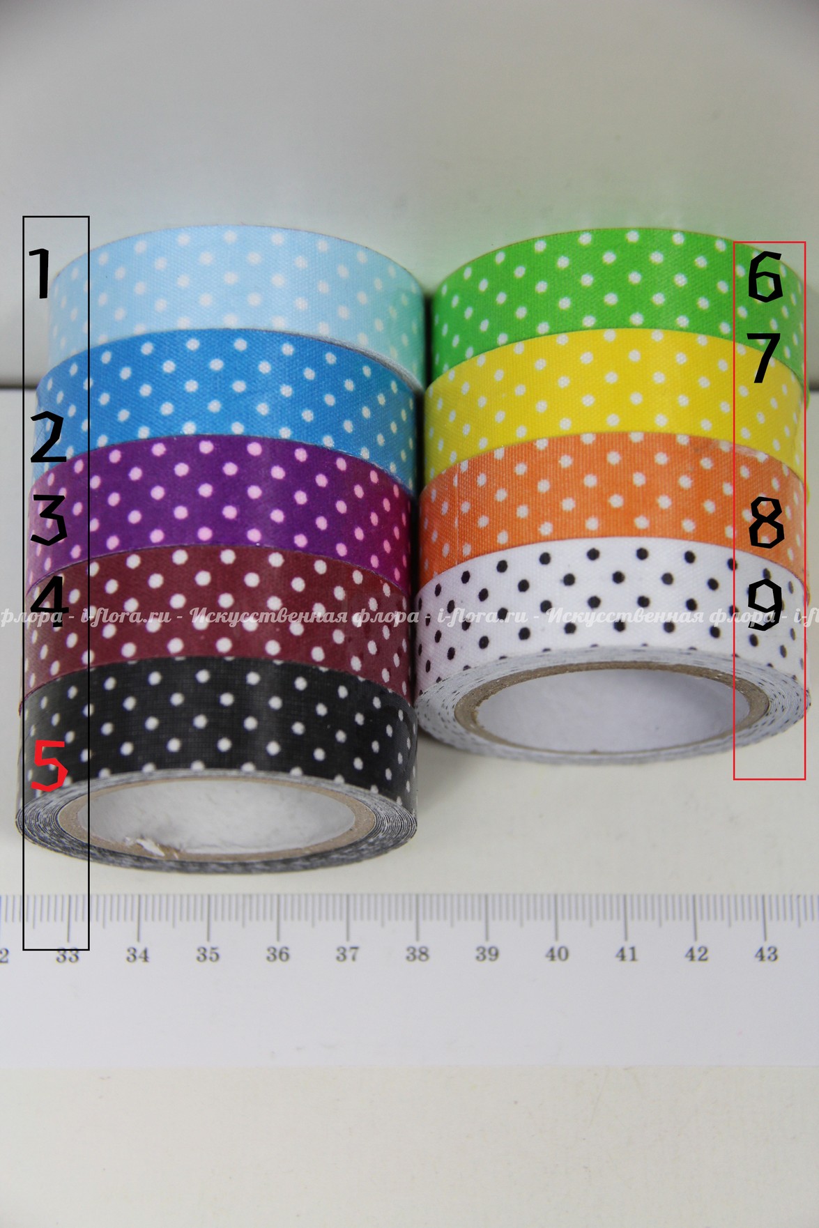 Тесьма цветная, хлопчатобумажная. С одной стороны скотч. Для декоративно-прикладных работ.