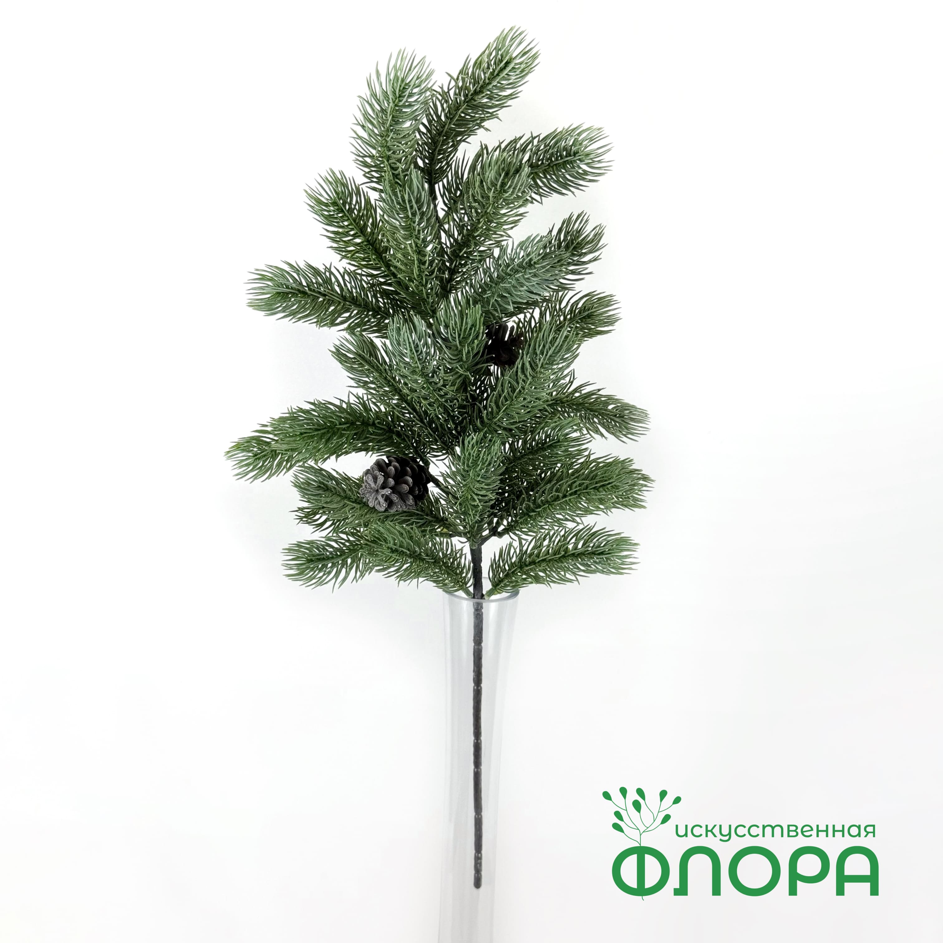 На ветке 25 фрагментов ели по 12 см. и 2 шишки.