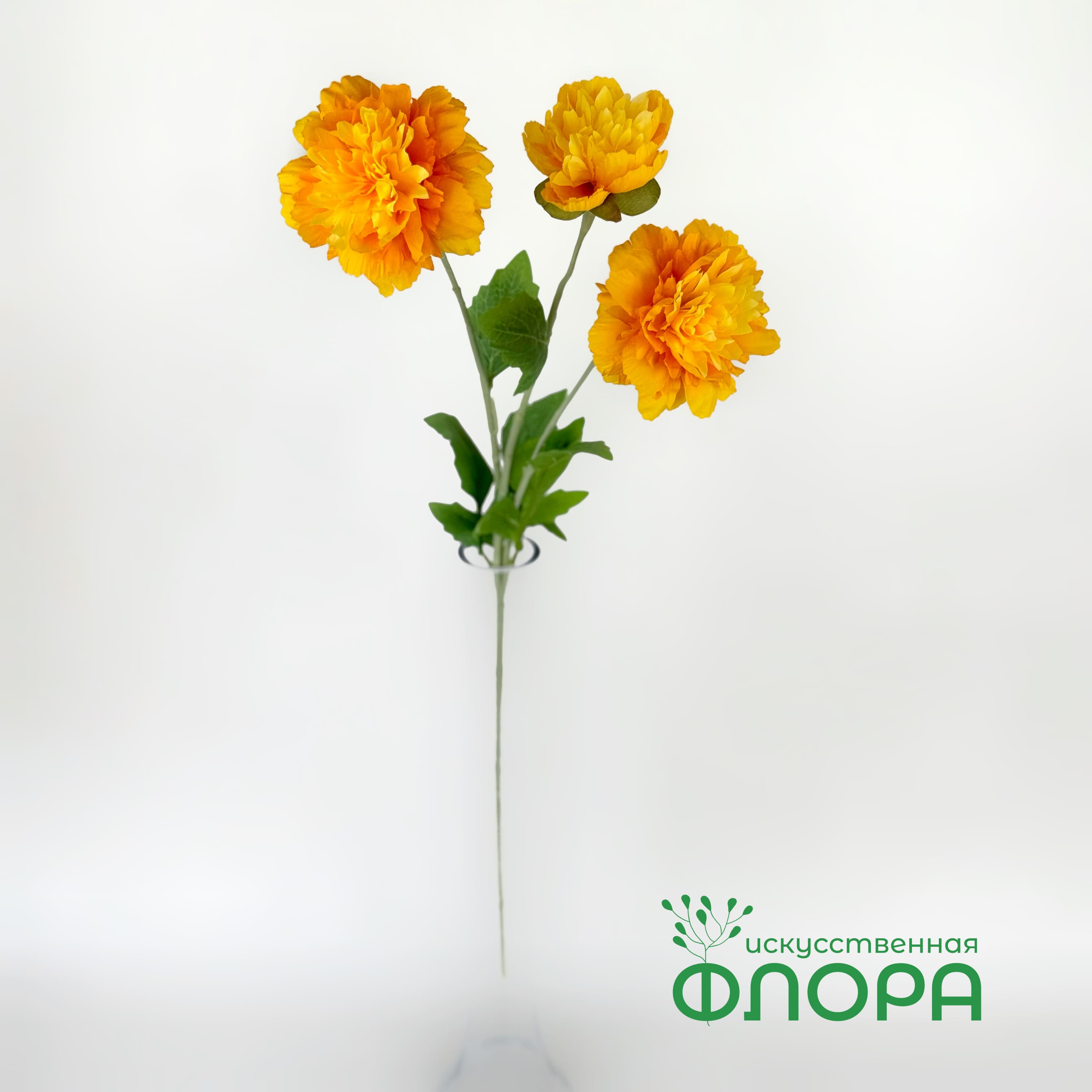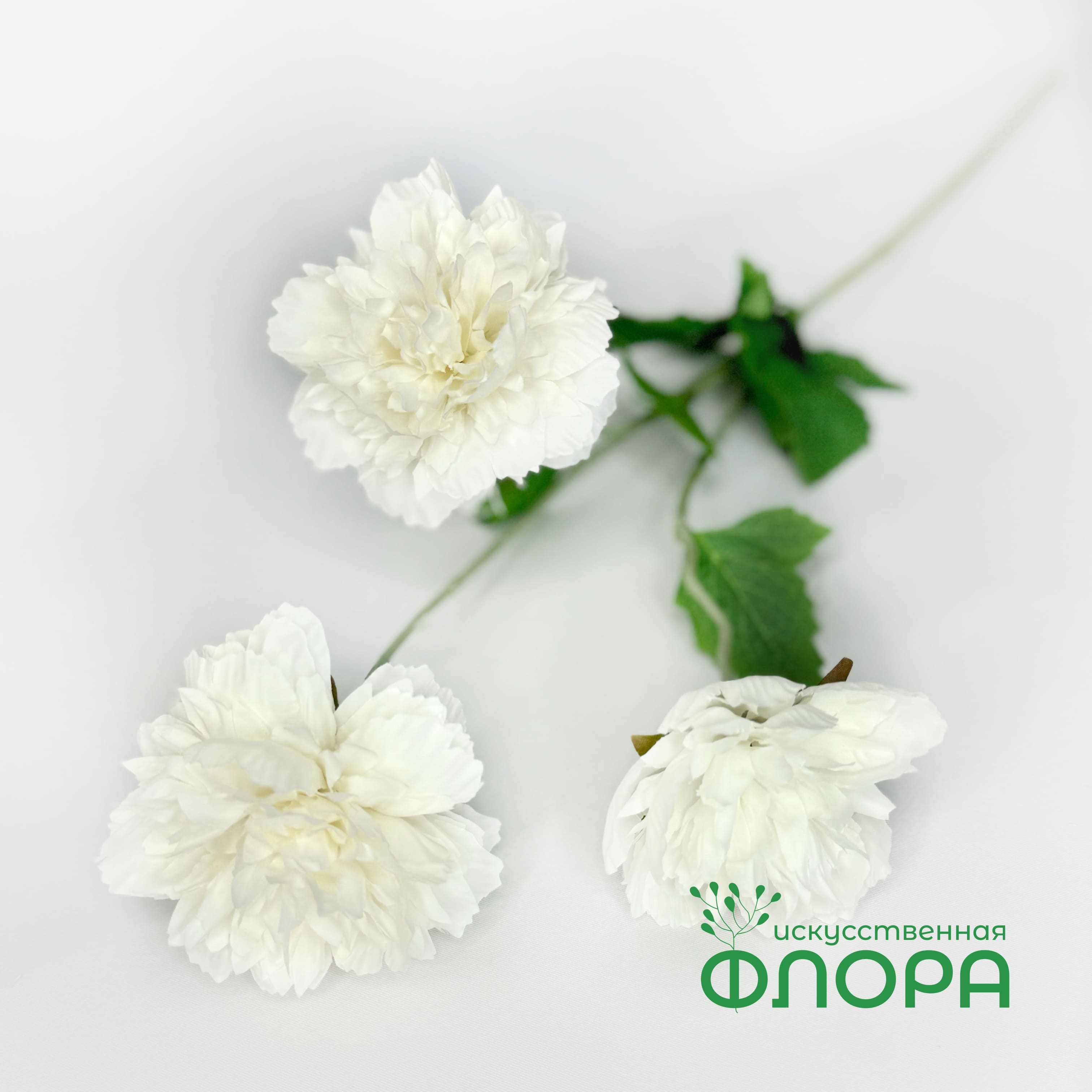 Ветка пион Селебрити Высота ветки: 78 см. Состоит из трех голов, диаметром 12 см. Материал: шелк хорошего качества.