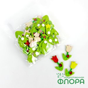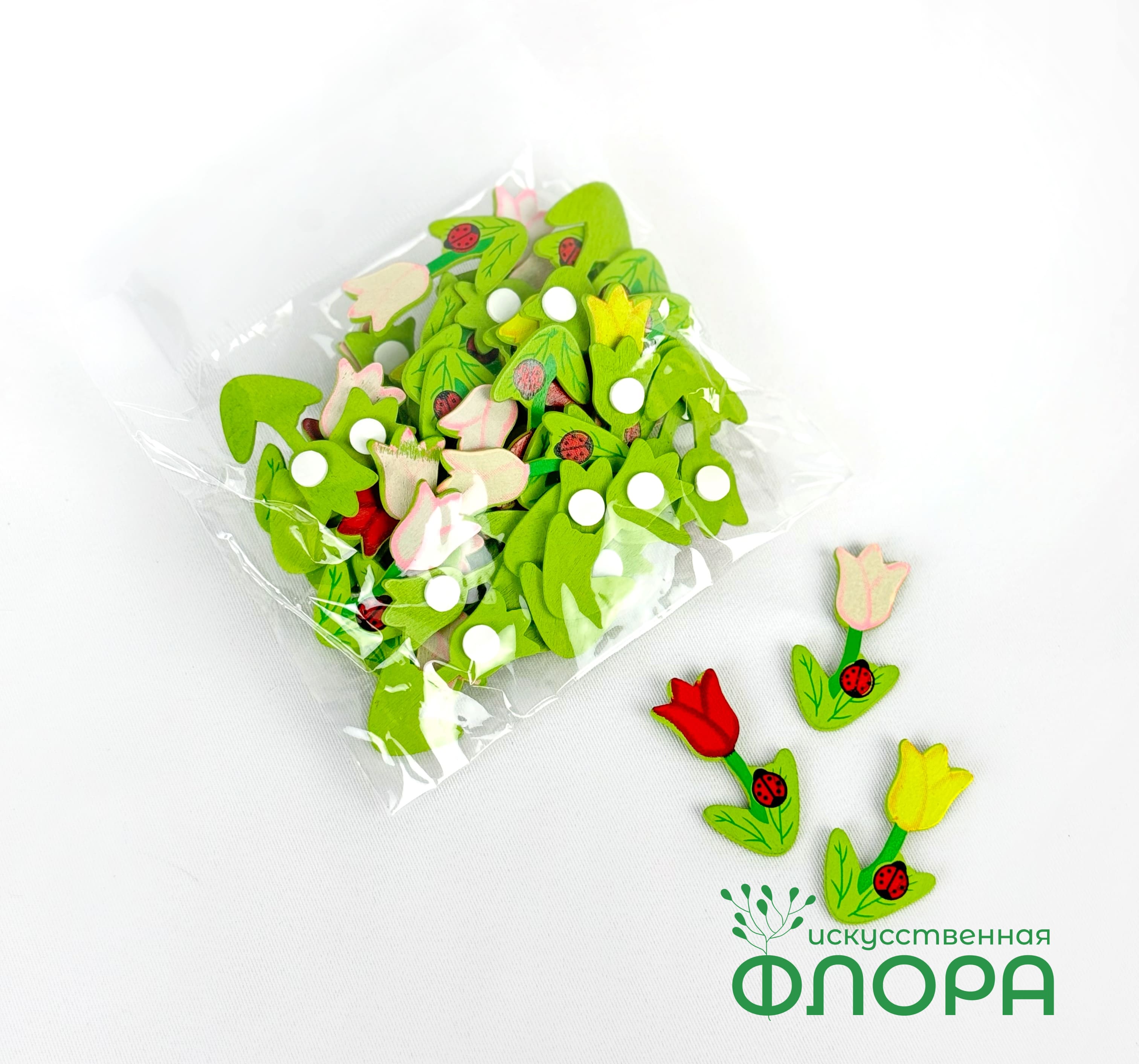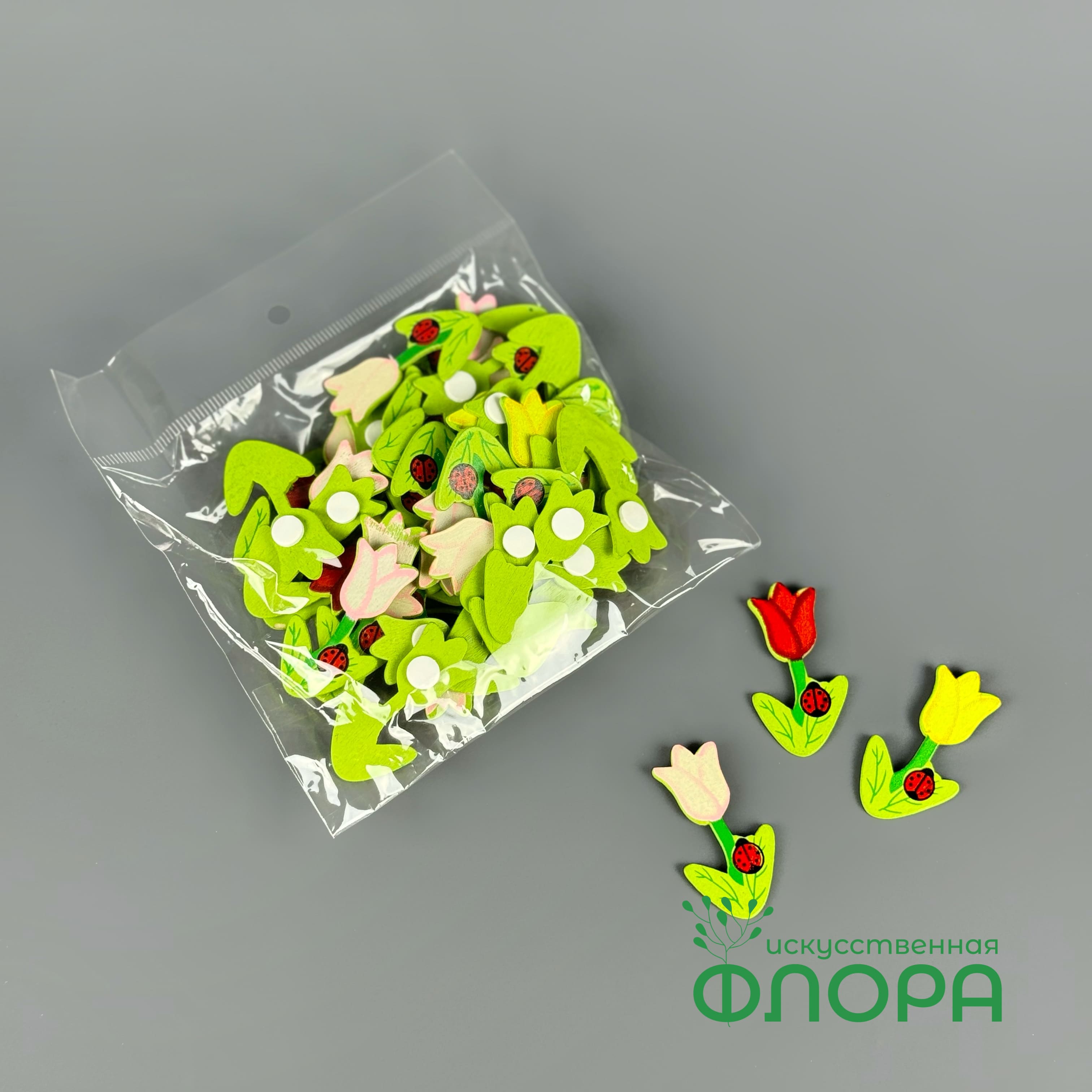 Стикер - тюльпан с божье коровкой (упаковка 25 штук)