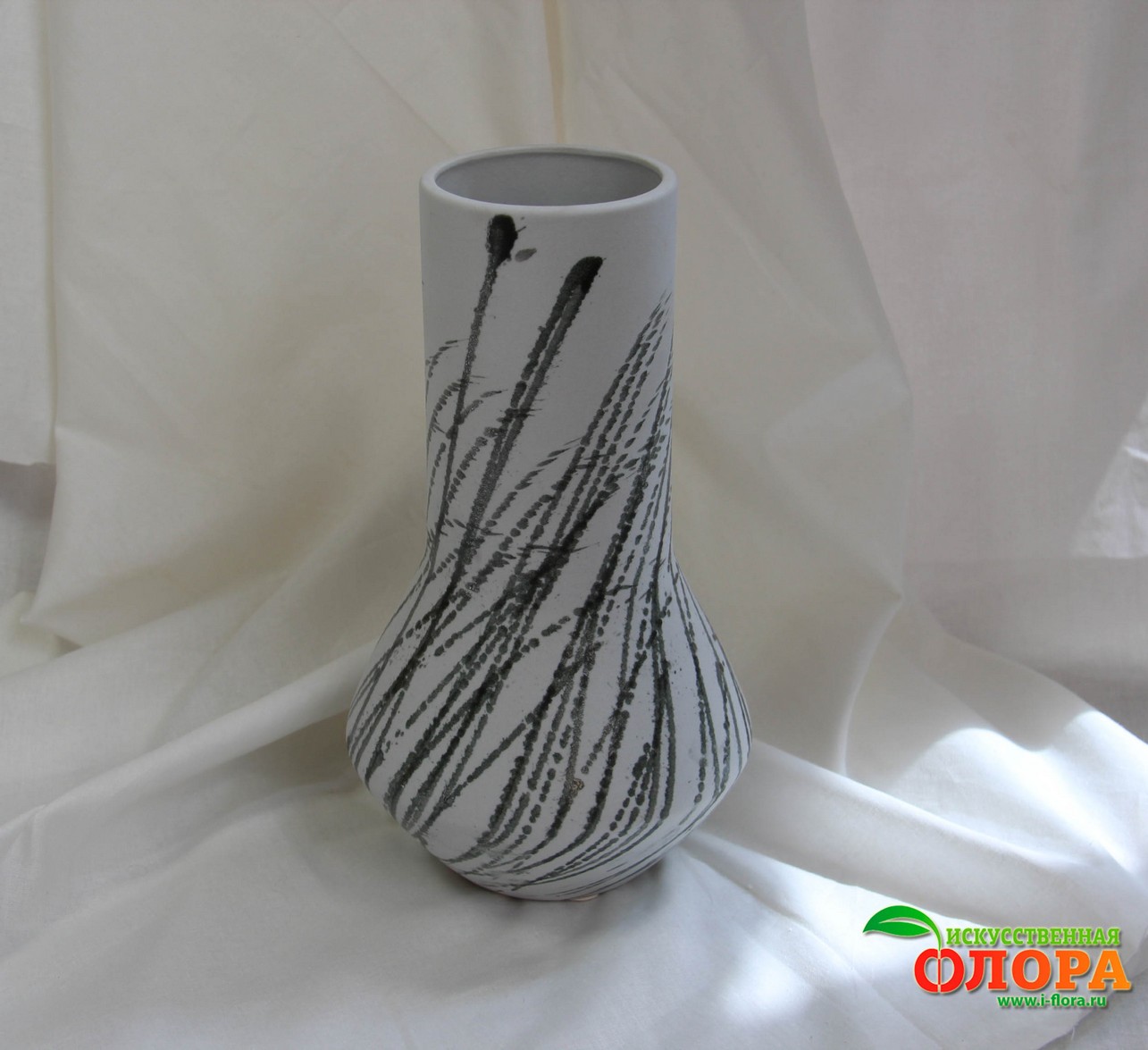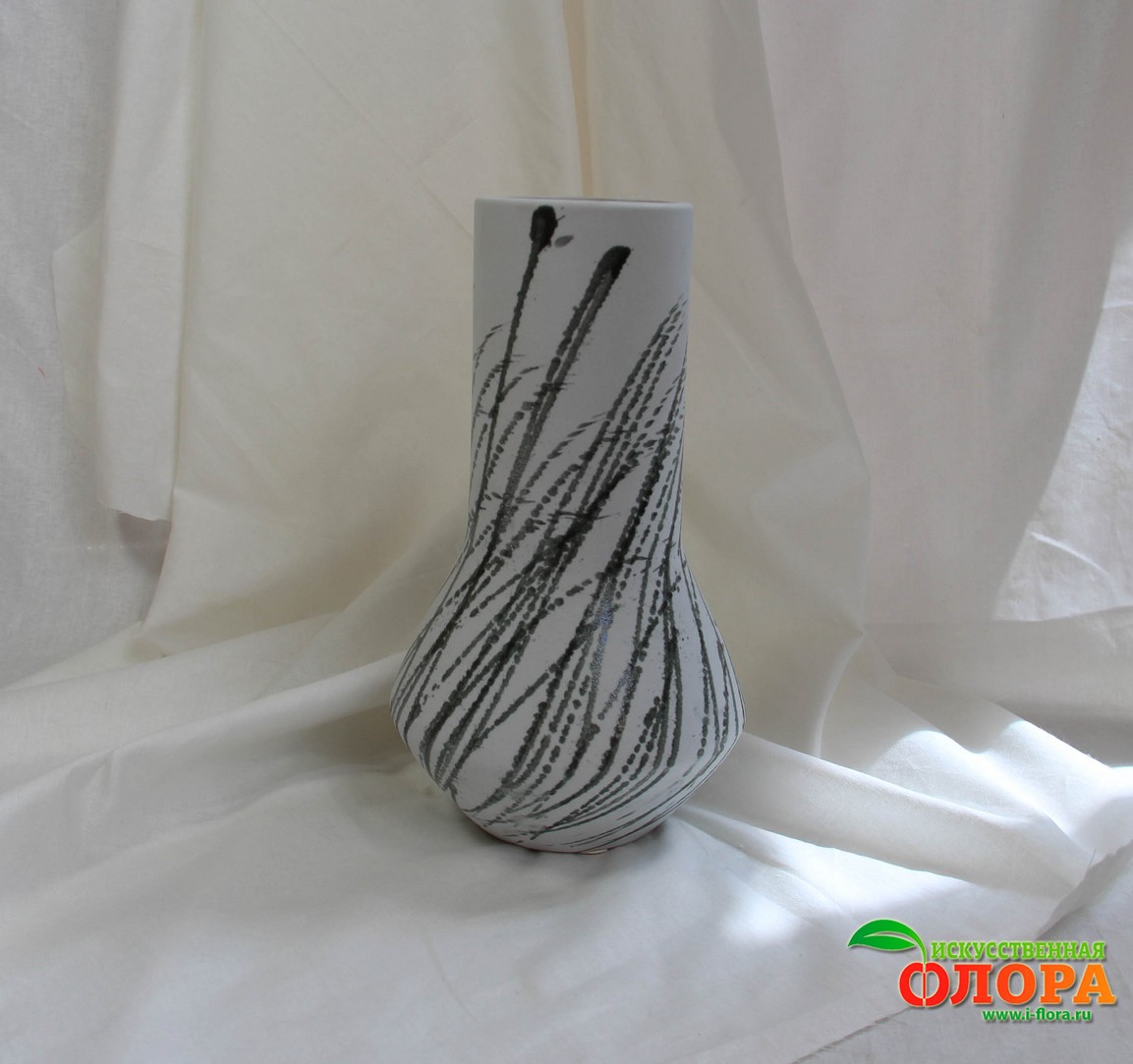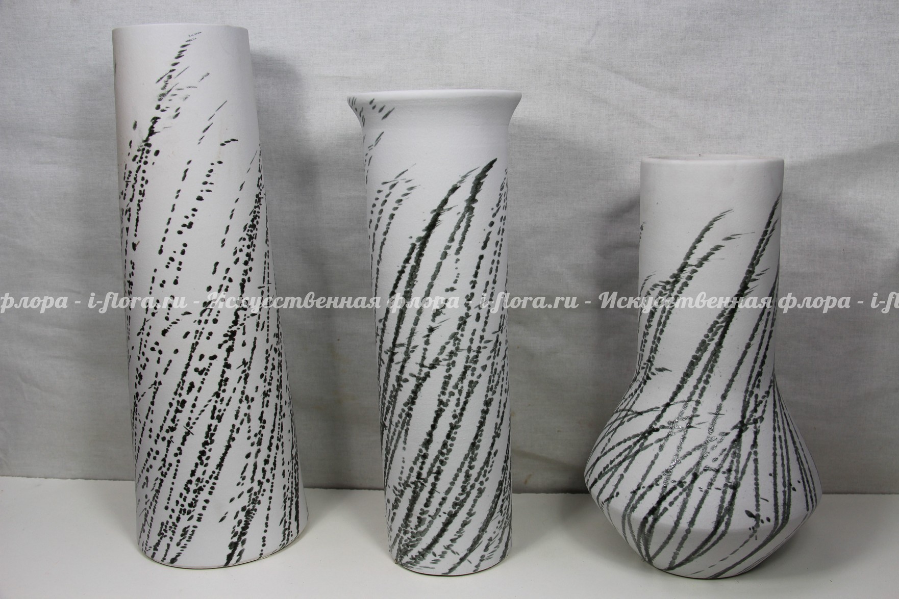 Коллекция фарфоровых ваз авторской работы, с красивым рисунком трав. Белая матовая, шероховатая поверхность. Струкрутра толстая, прочная, ваза устойчивая.