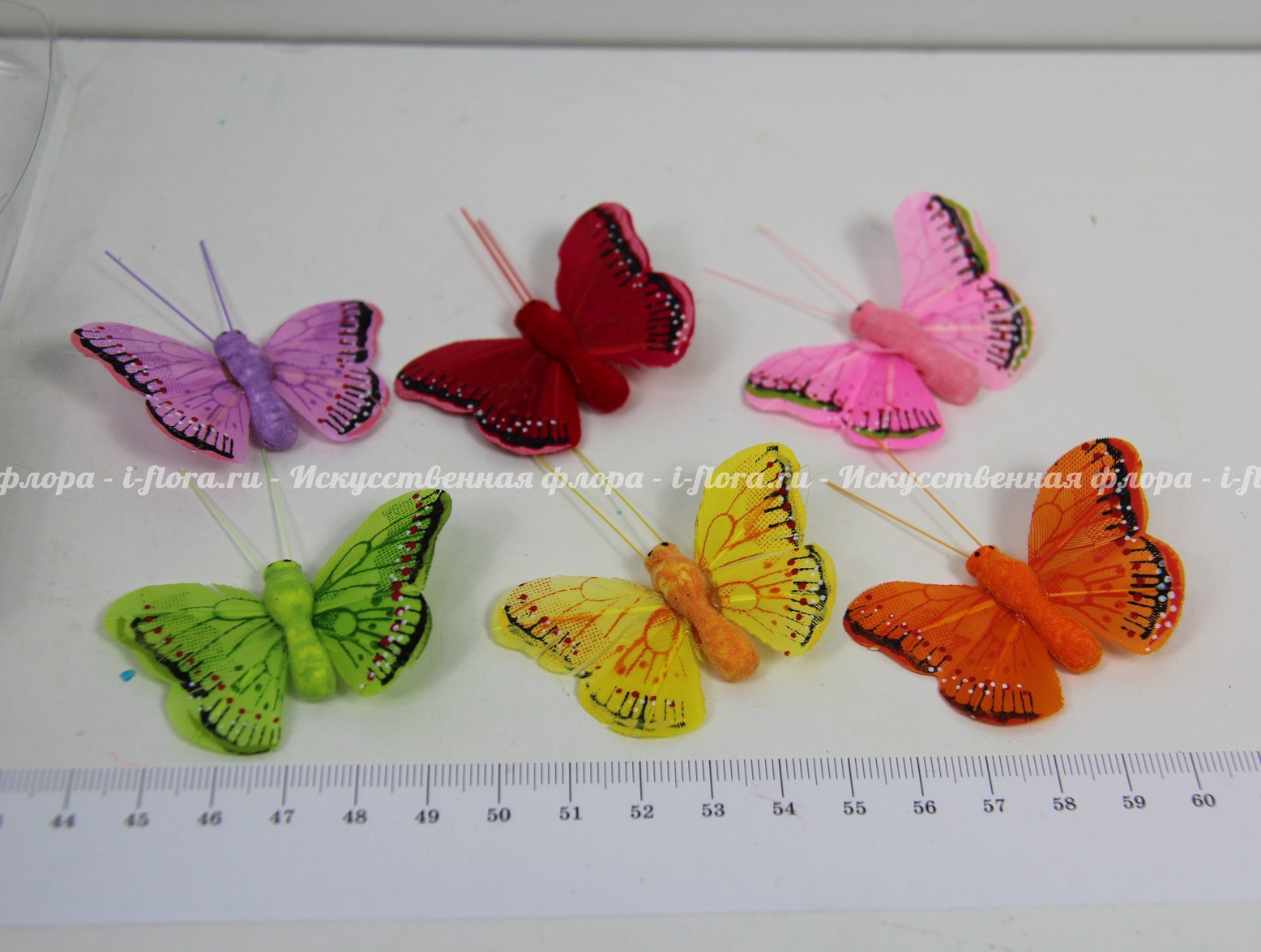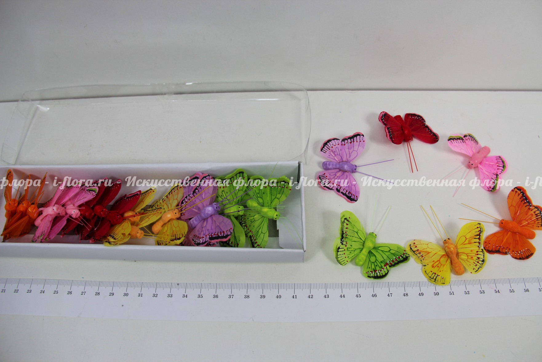 В упаковке 24 бабочки. В упаковке 6 цветов (зелёный, жёлтый, красный, оранжевый, сиреневый, розовый).