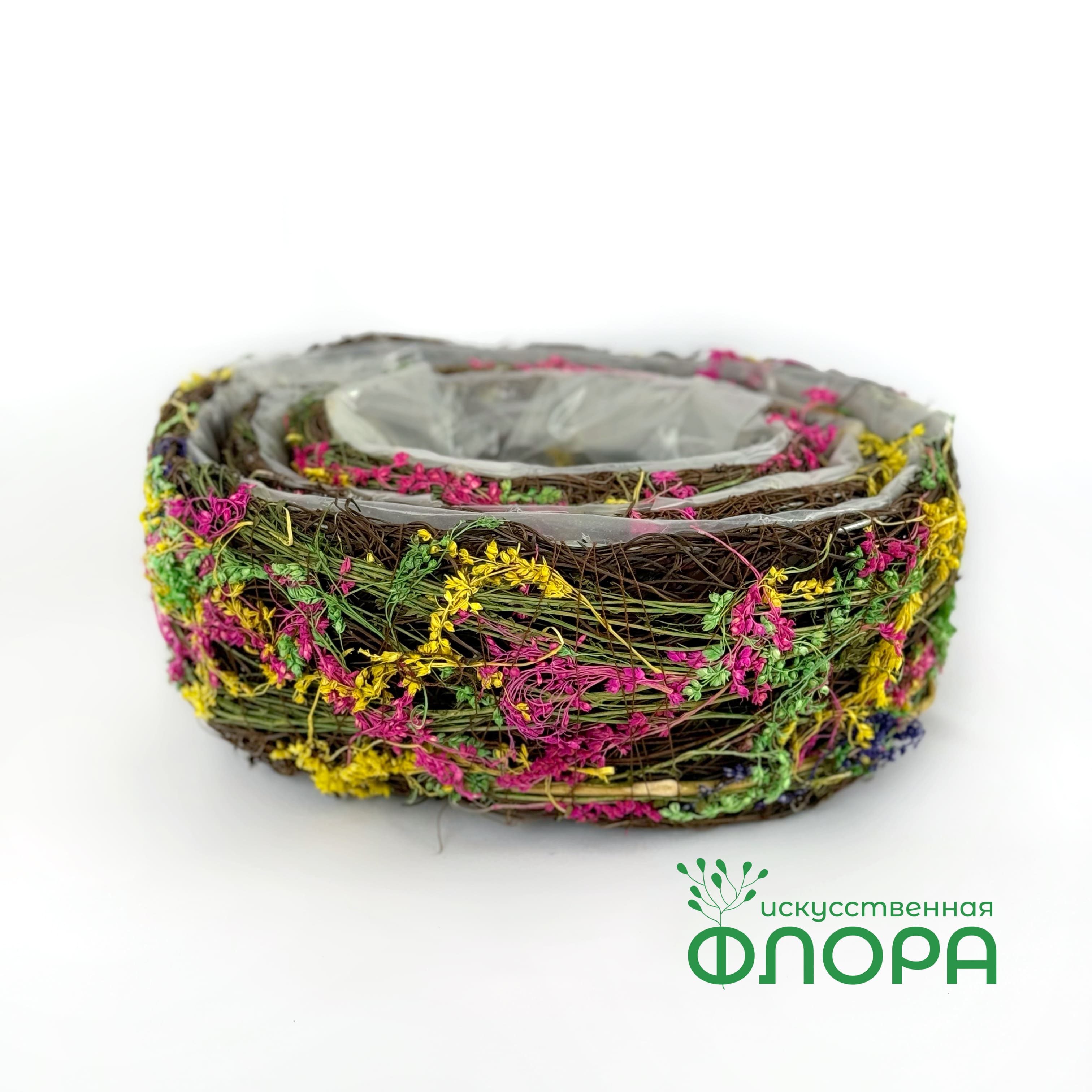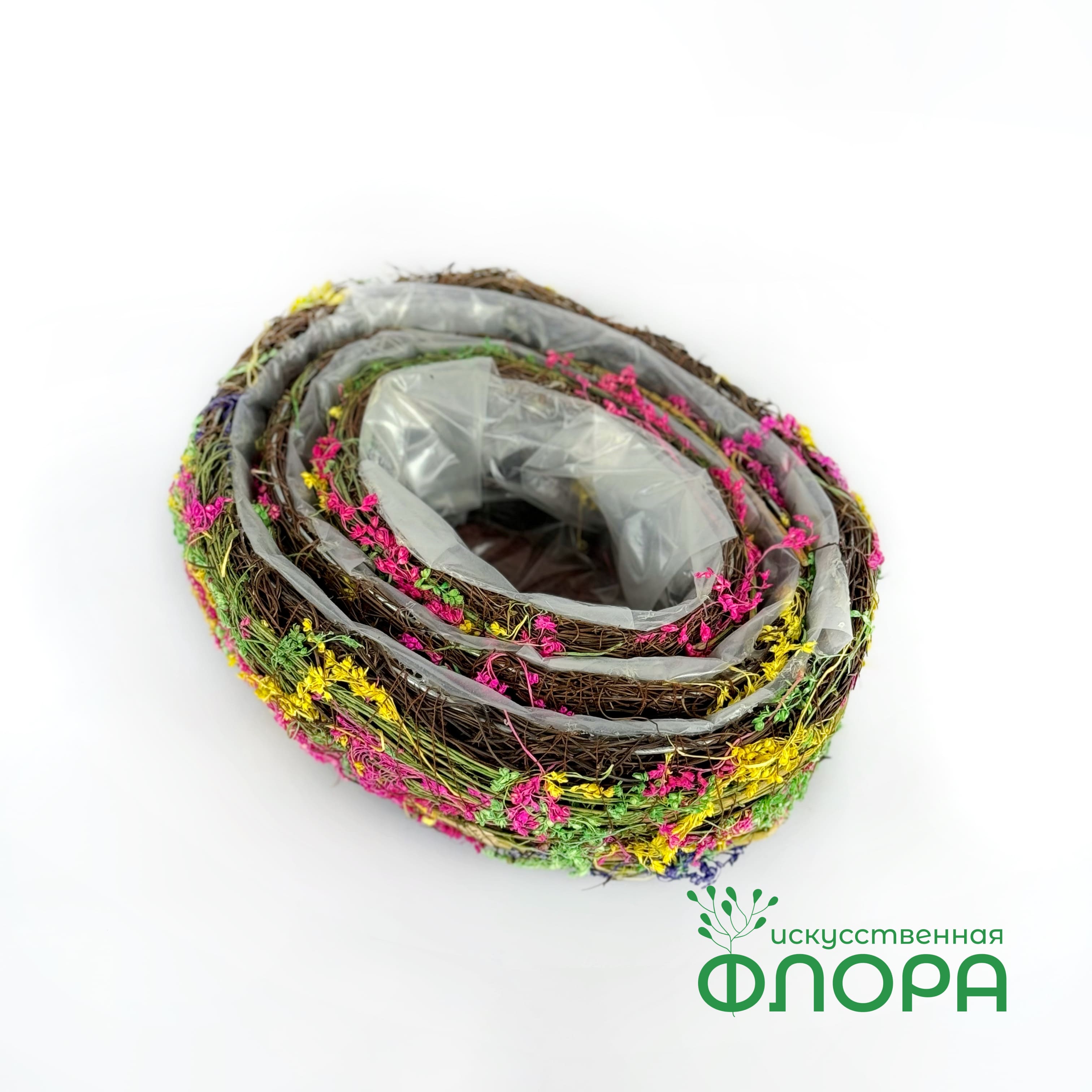 Внутри проложено целлофаном. Применяется для различных композиций из живых цветов и искусственных. 100% натуральное.