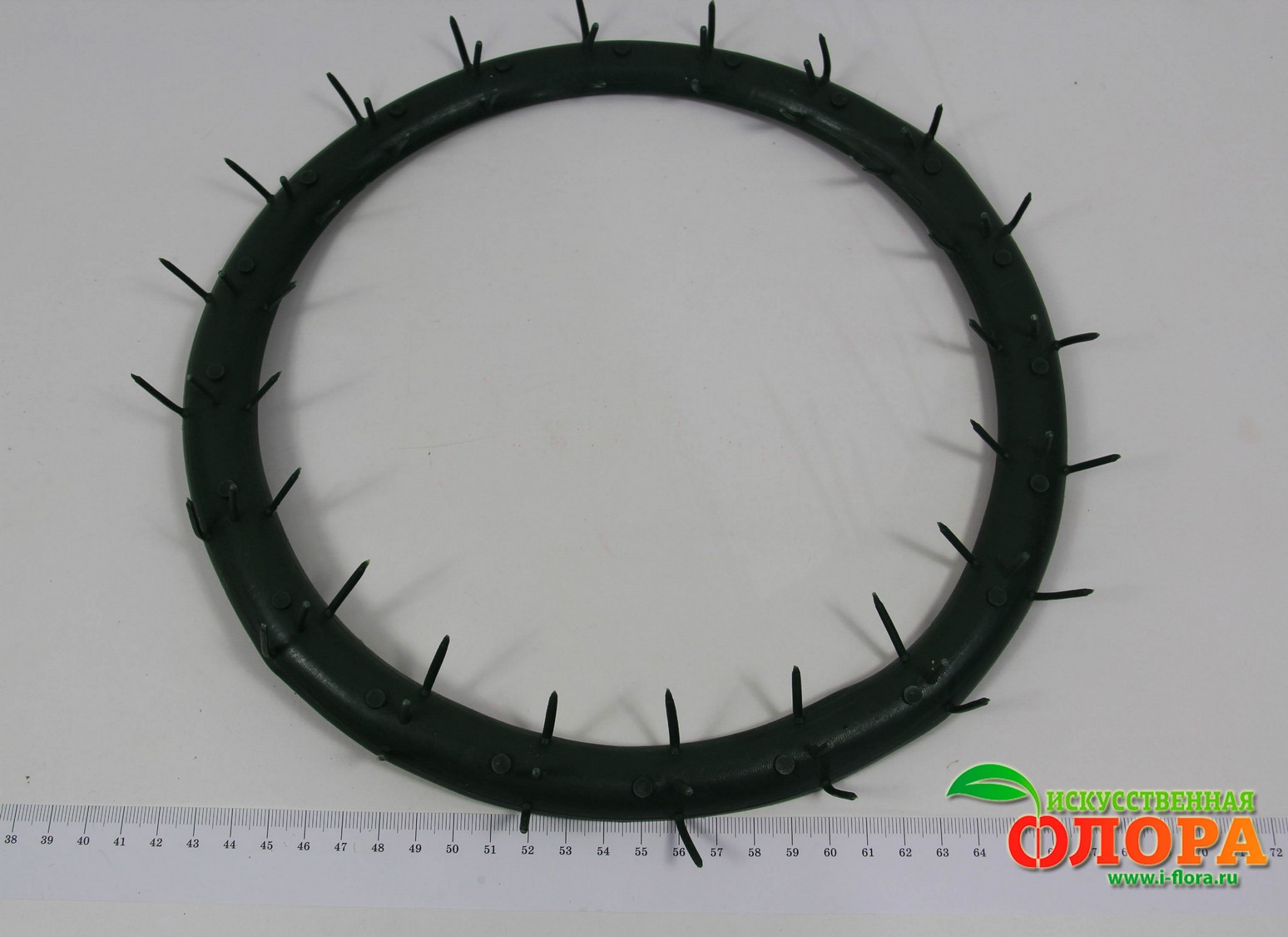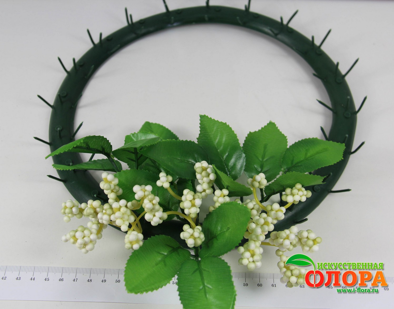 Имеются штырьки для крепления цветов и других декоративных материалов. Кольцо выгнуто и с обратной стороны предусмотрены перемычки усиления формы.