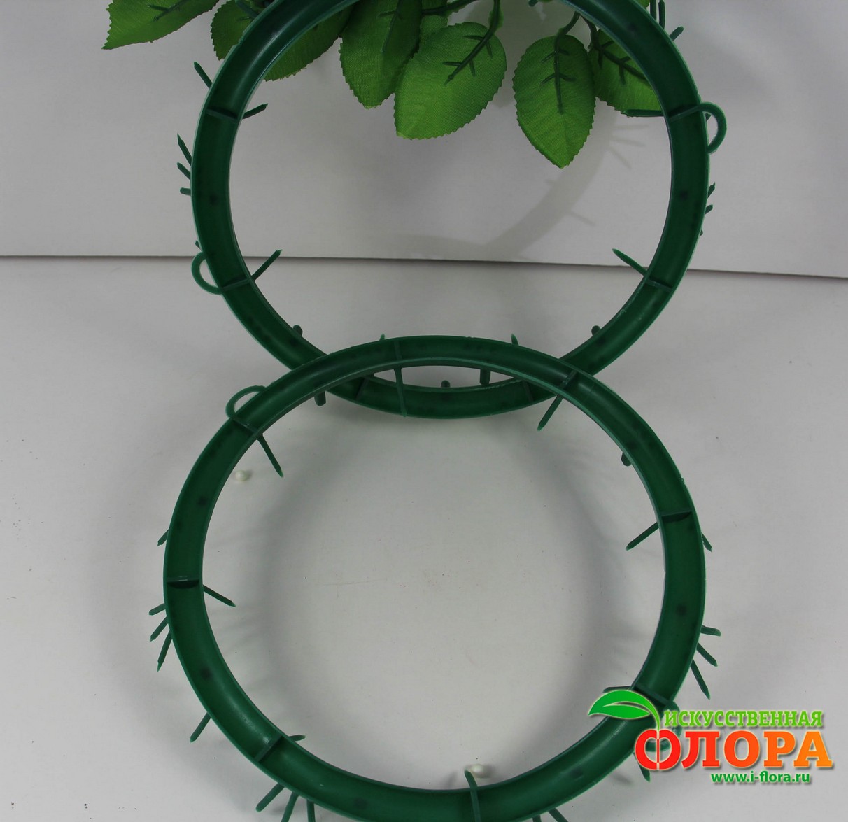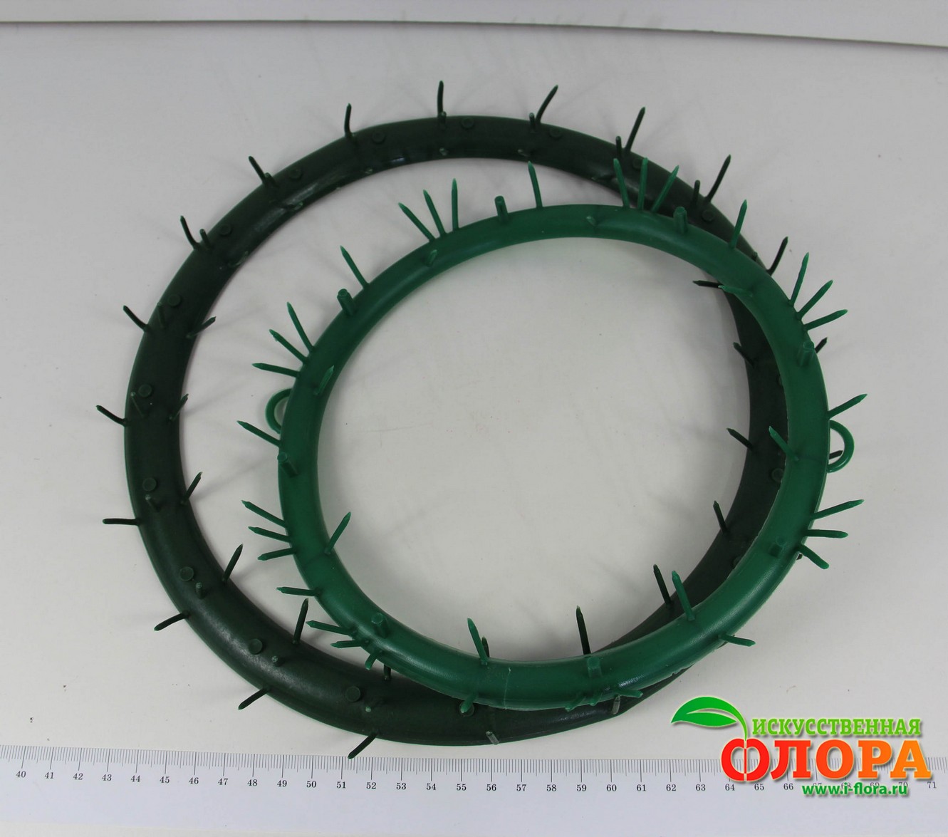 Каркас пластмассовый - КОЛЬЦО. Материал: пластик. Имеются штырьки для крепления цветов и других декоративных материалов. Кольцо выгнуто и с обратной стороны предусмотрены перемычки усиления формы. D-19 см. Цена за 1 штуку. Диаметр: 190мм.