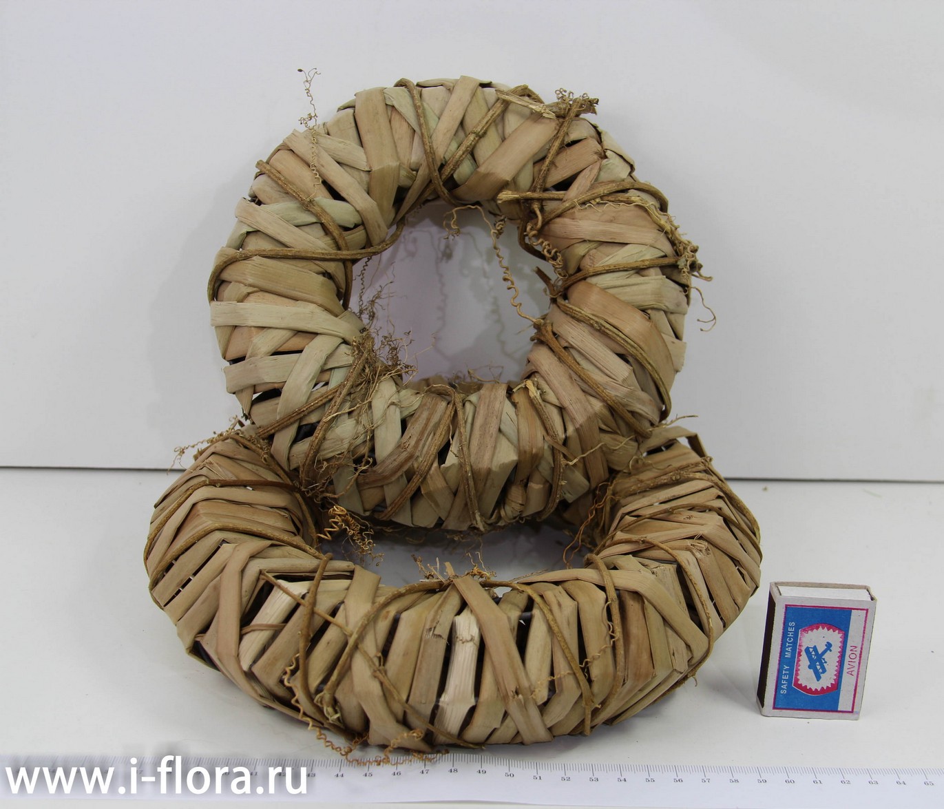 Кольцо объёмное с прочным сварным основанием из металлического прута, обвитое гиацинтом и лианой. Обработано антисептиком.