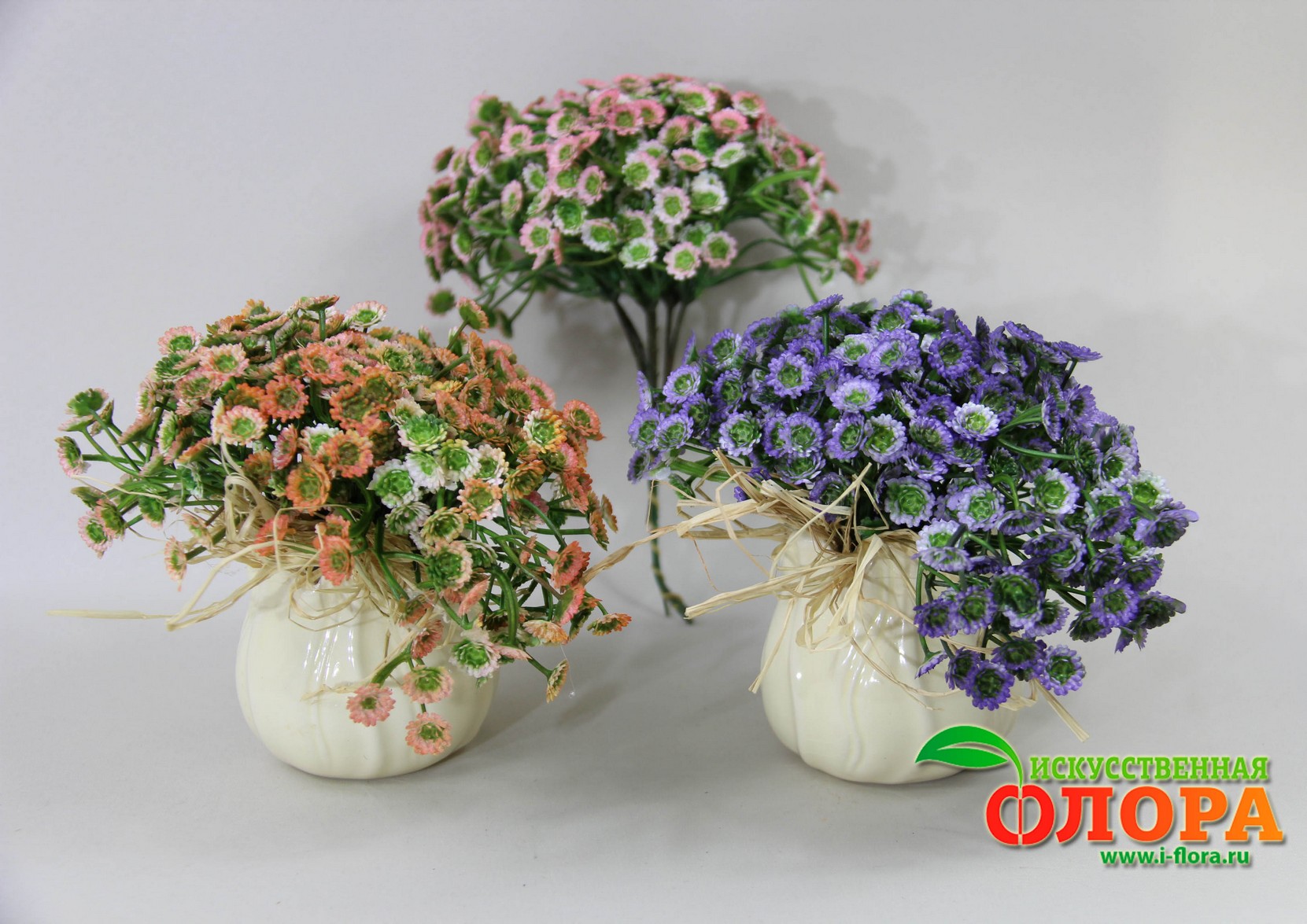 Композиция с пластиковыми хризантемками. Цена за 1 штуку.