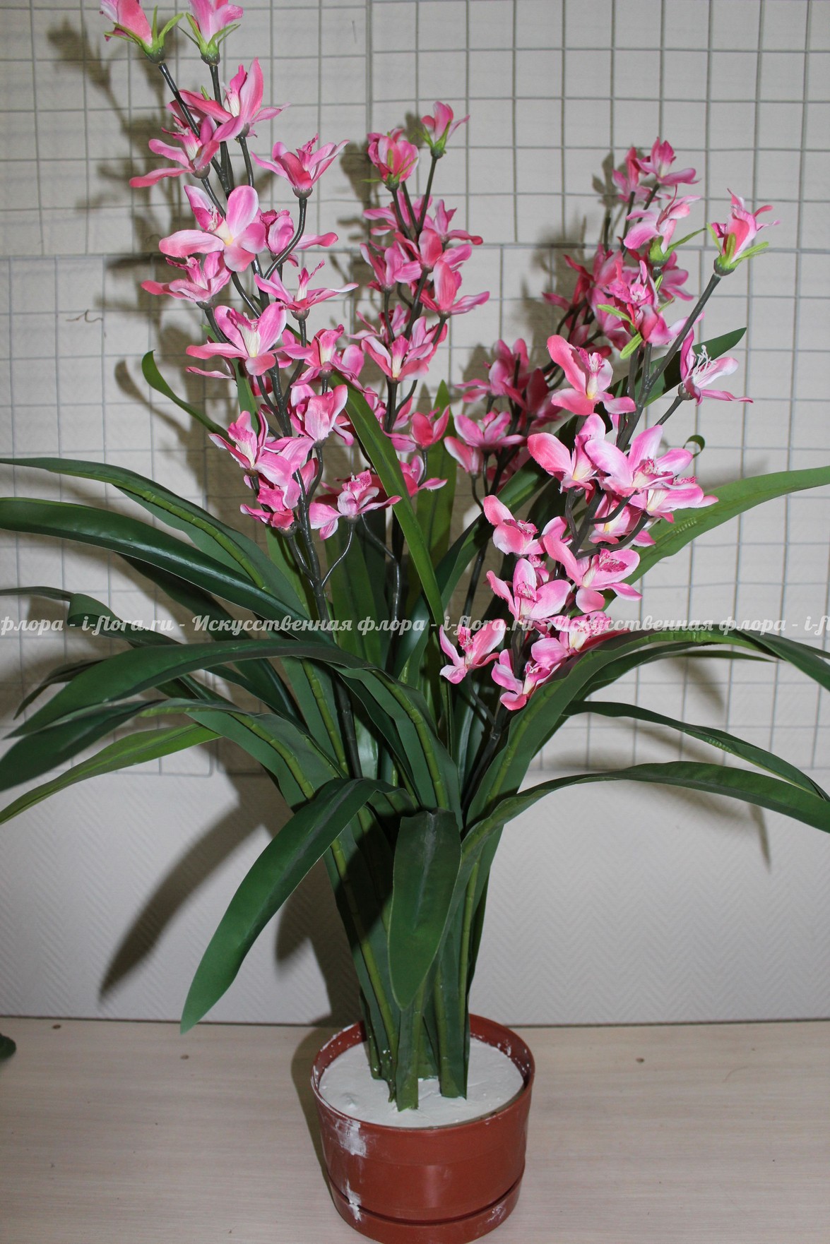 Куст имеет три отдельных группы стволов с листьями и цветами и закреплять в группе Вы можете по своему усмотрению так как цветок идёт без кашпо (три штуки разделены между собой).