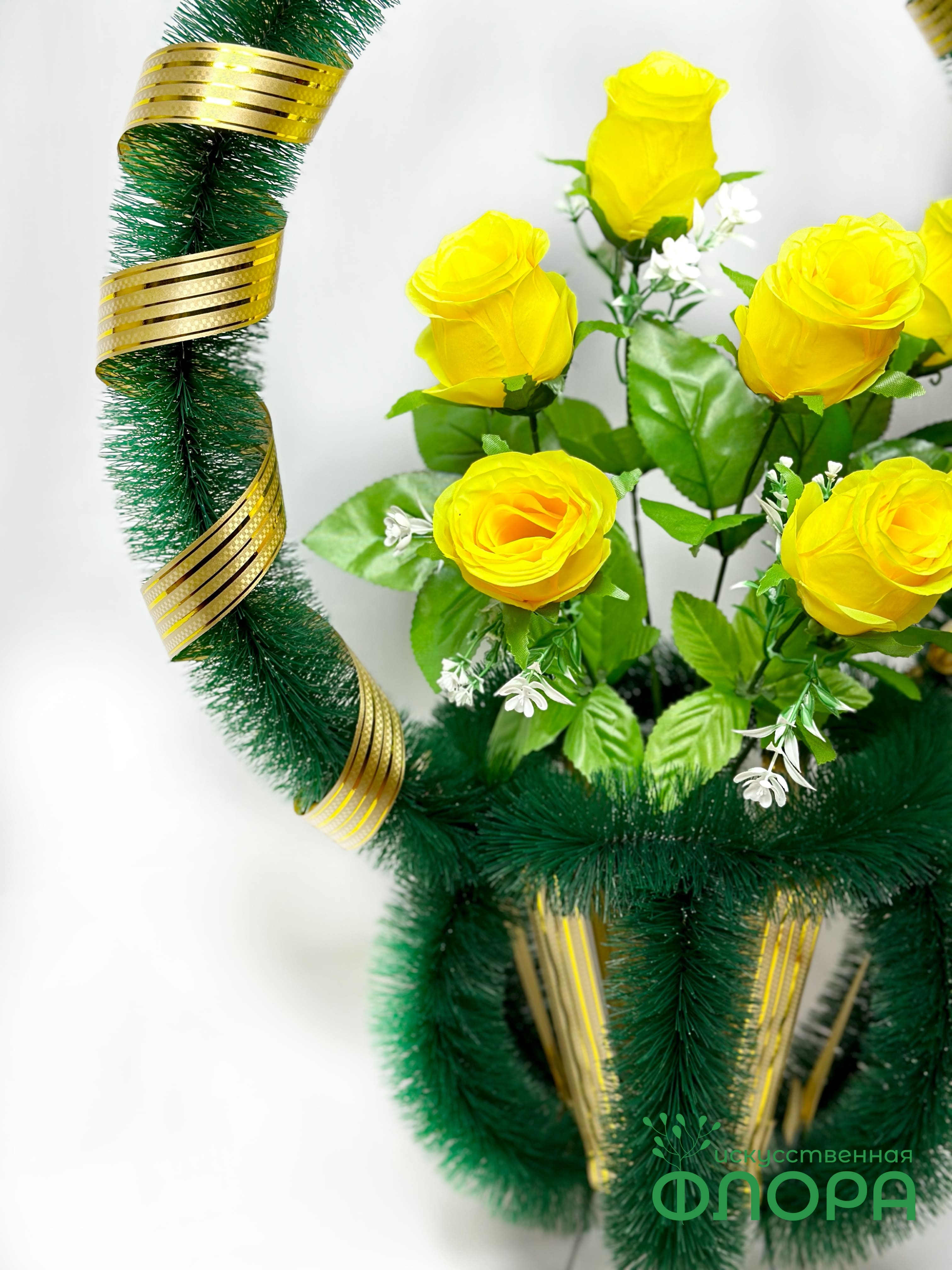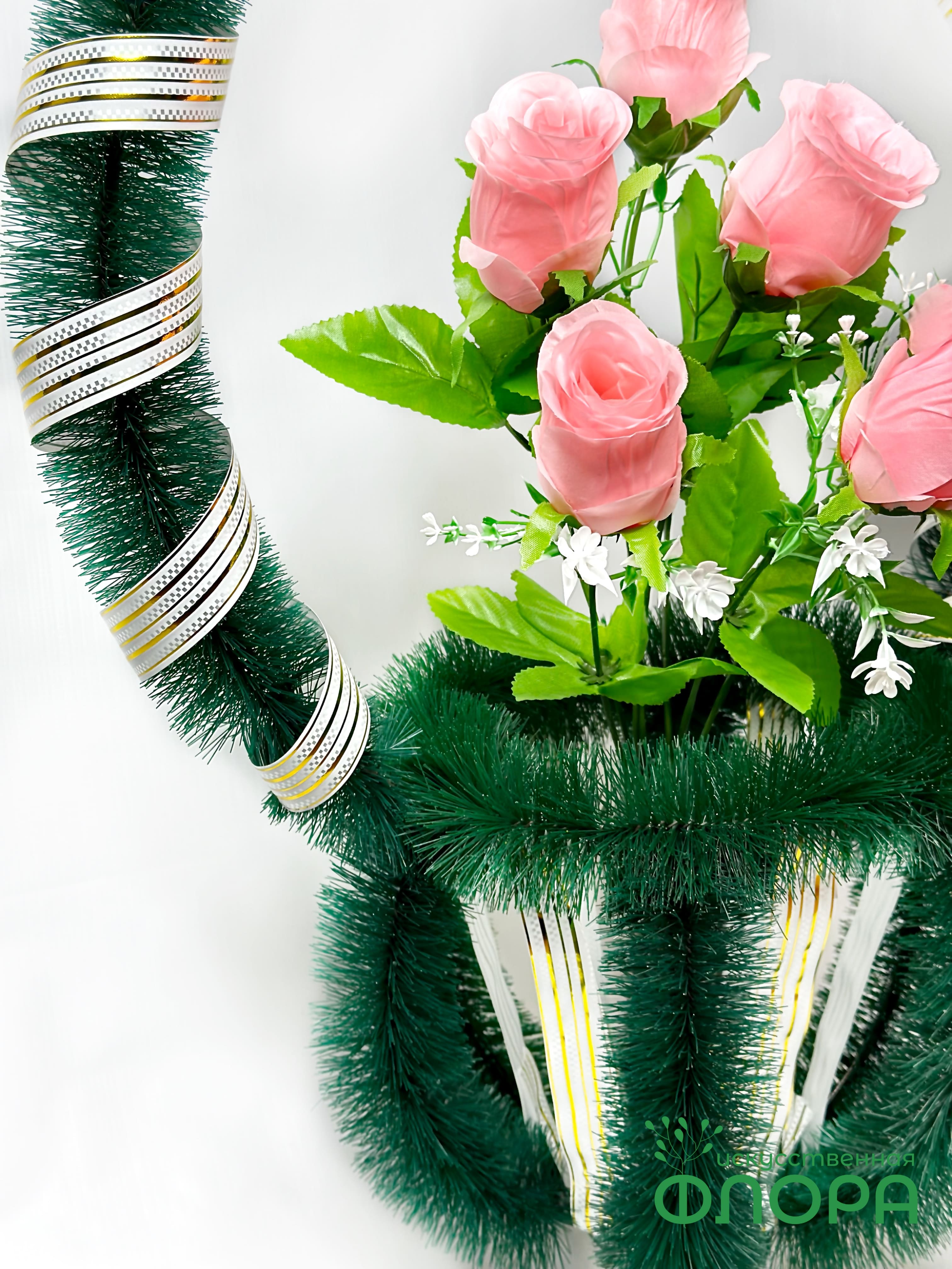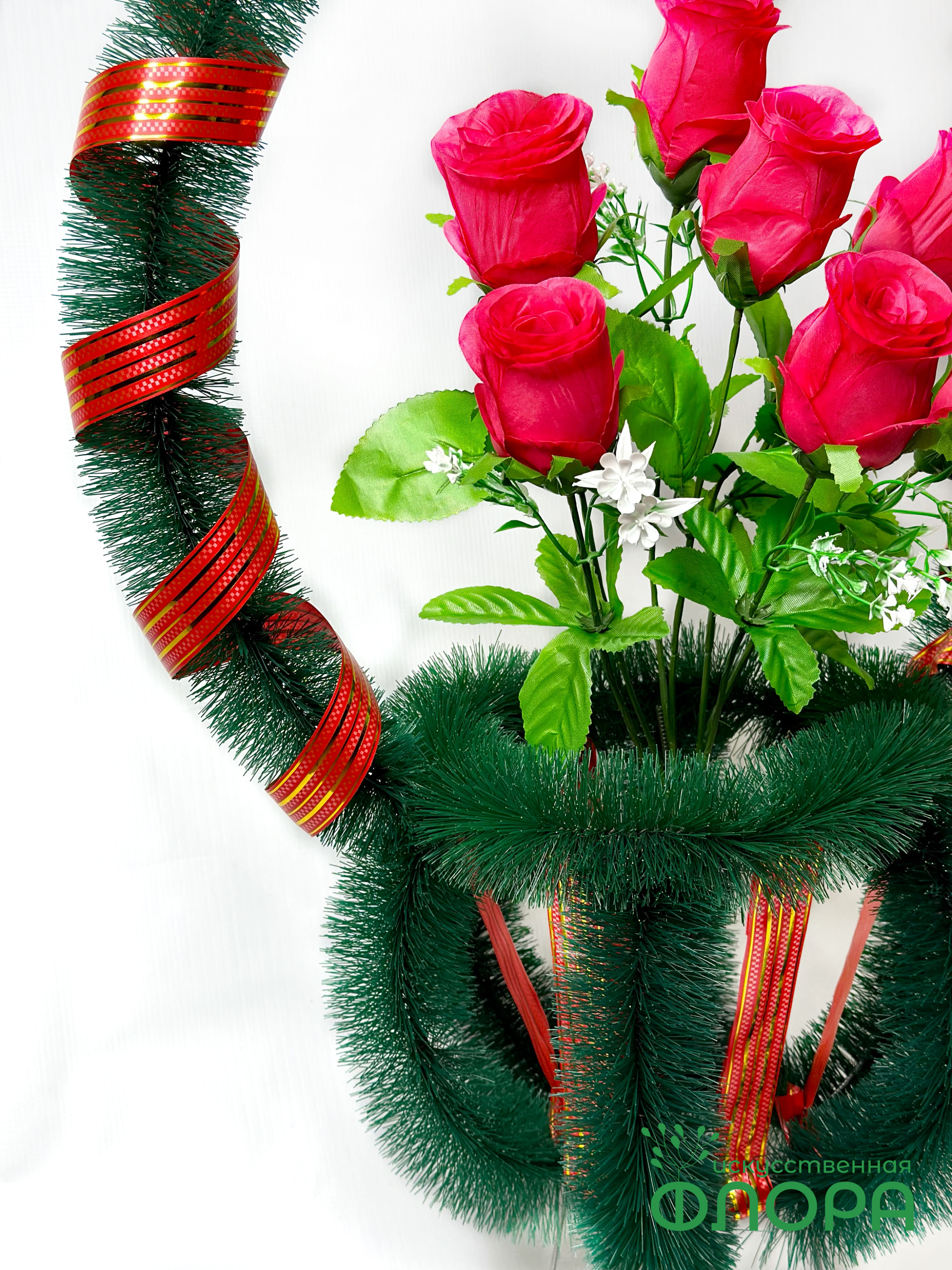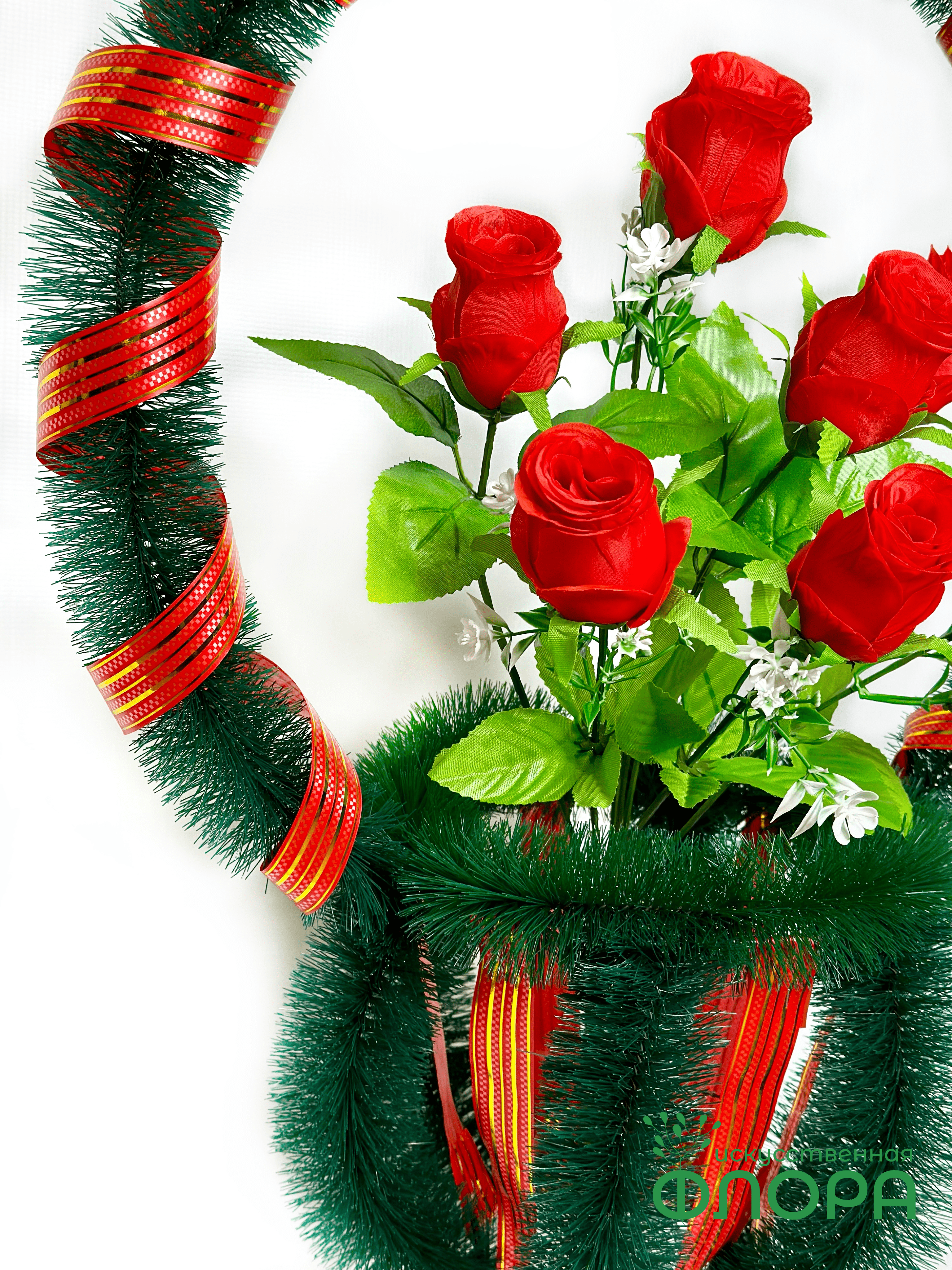Корзина "Фонарик": состоит из 7-ми голового букета Розы (Бутон), качественного ерша, ленты.