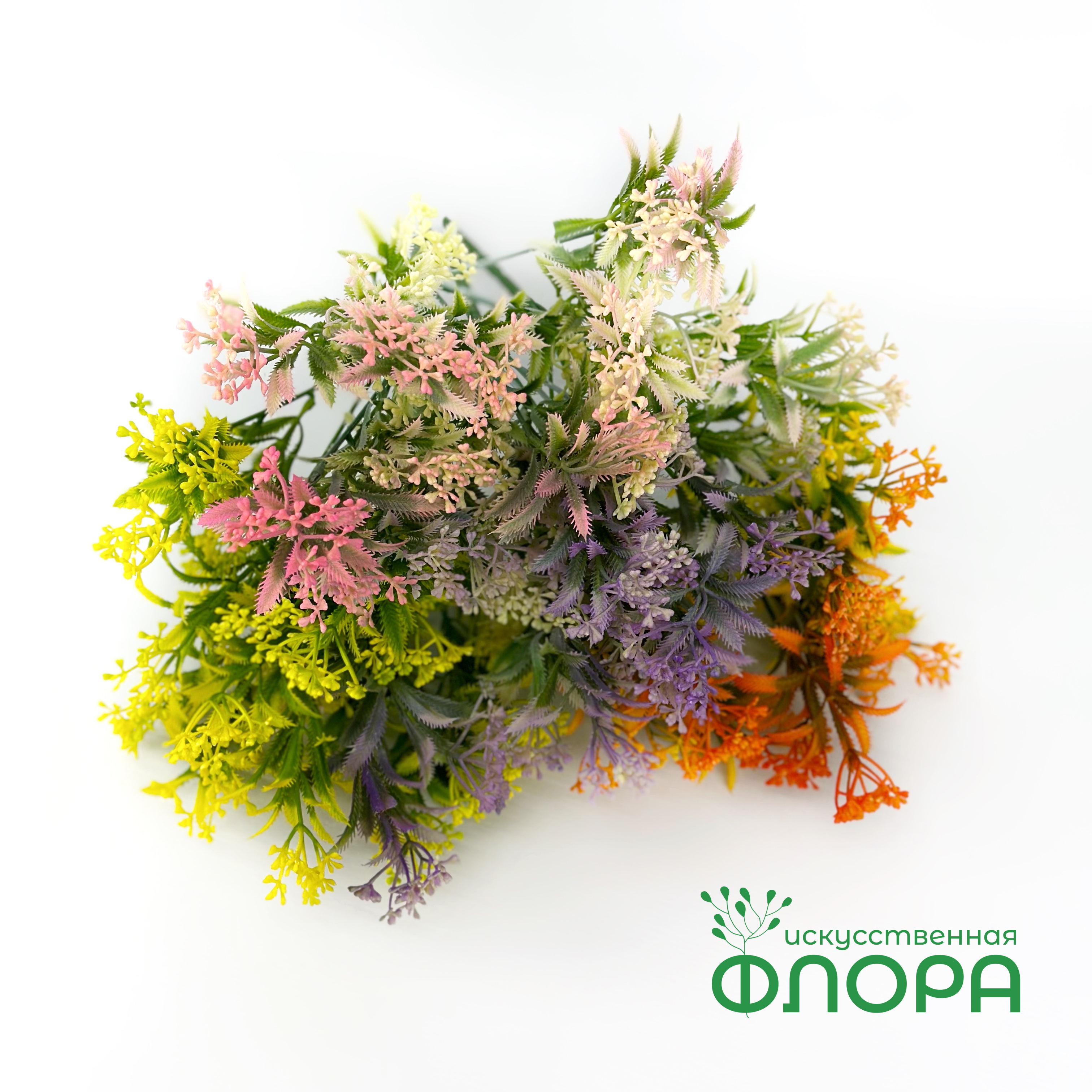 Букет имеет 7 ответвлений, на каждом по 3 соцветия, высотой 8,5 см.