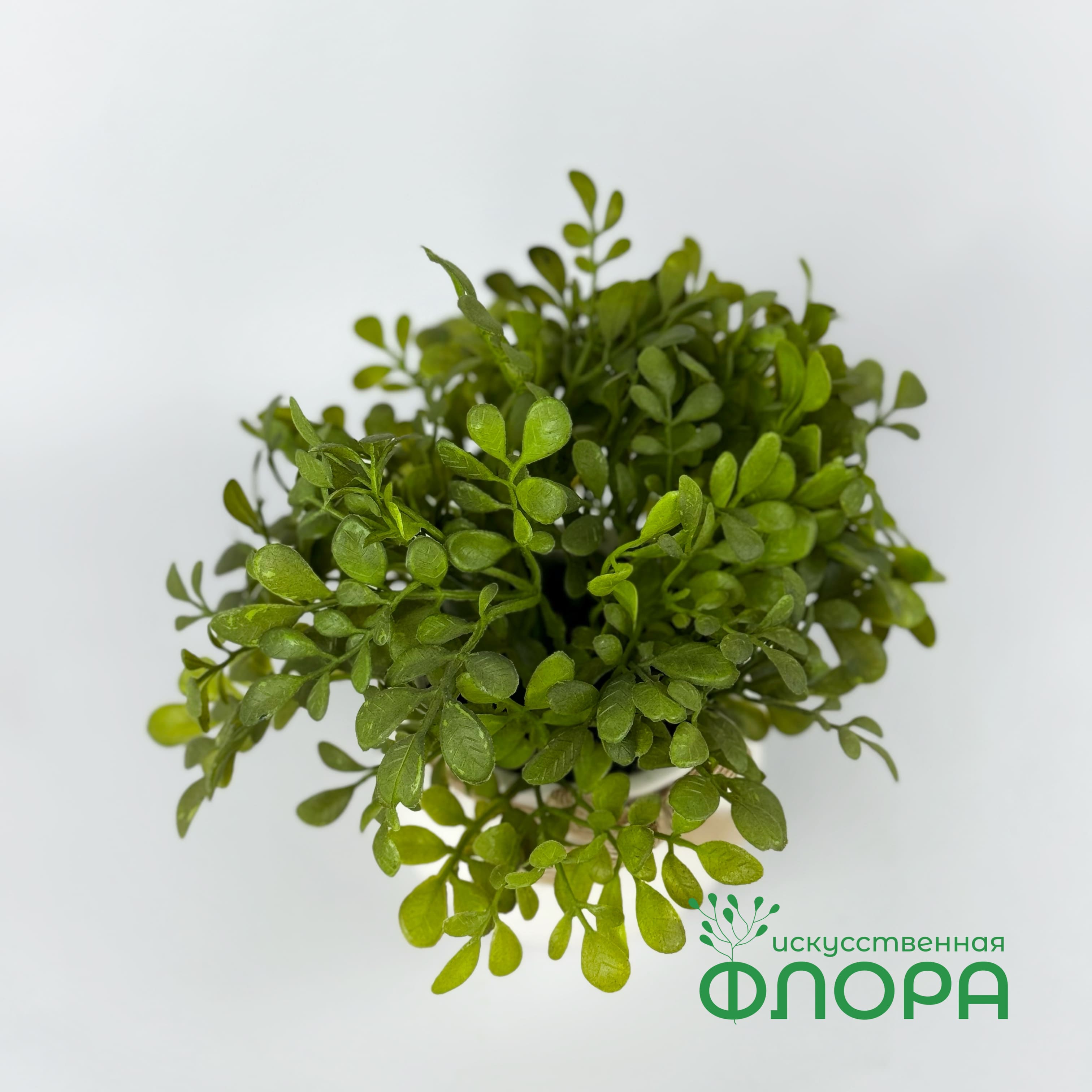 Букет "Самшит мелколистный" Высота: 34 см. Букет состоит из 5 ног, на каждой по 3 фрагмента высотой 10 см. Материал: пластик хорошего качества.