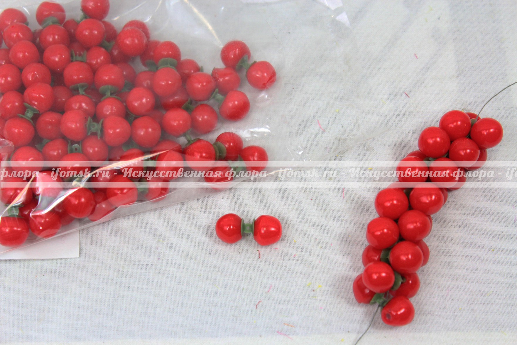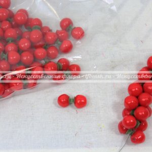 Красная ягода двойная с отверстием (для гирлянд), латексная.